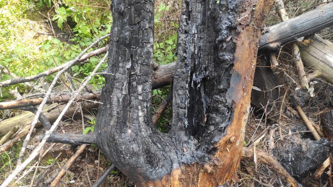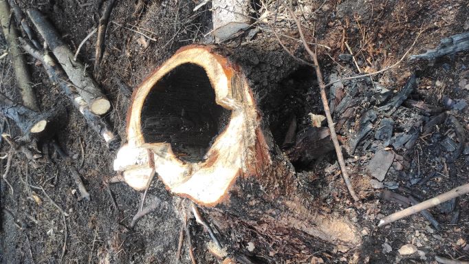 W chwili przybycia na miejsce zdarzenia pierwszych zastępów stwierdzono, że w lesie mieszanym z przewagą sosny pali się podszyt, ściółka oraz pojedyncze pnie suchych drzew na obszarze ok. 1 ha. Pożar się nie rozprzestrzenia, a na powierzchni objętej pożarem stwierdzono liczne zarzewia ognia w ściółce i pniach zarówno leżących i stojących suchych drzew.