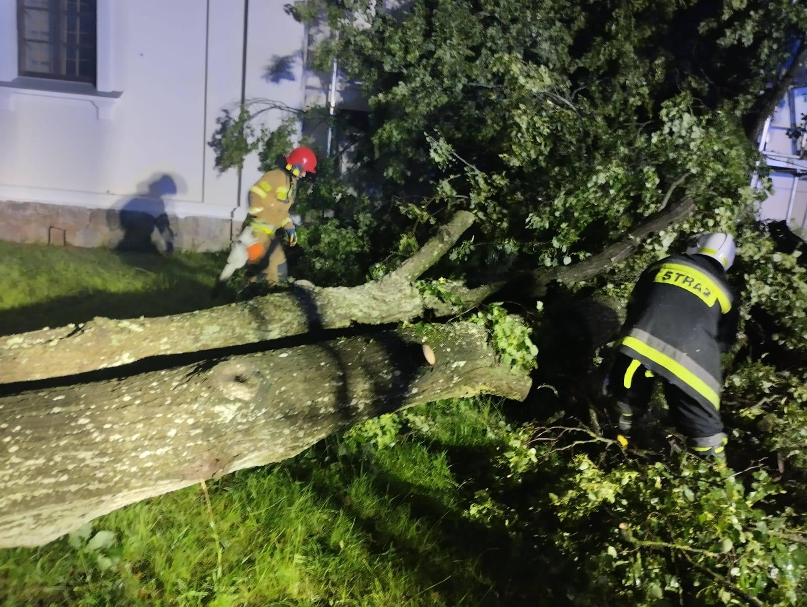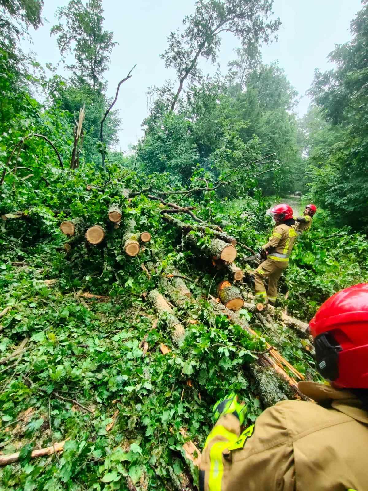 Skutki silnych porywów wiatru zgłaszane są do SK KP PSP w Hajnówce również w dniu 12.07.2024 roku i na bieżąco usuwane przez strażaków.