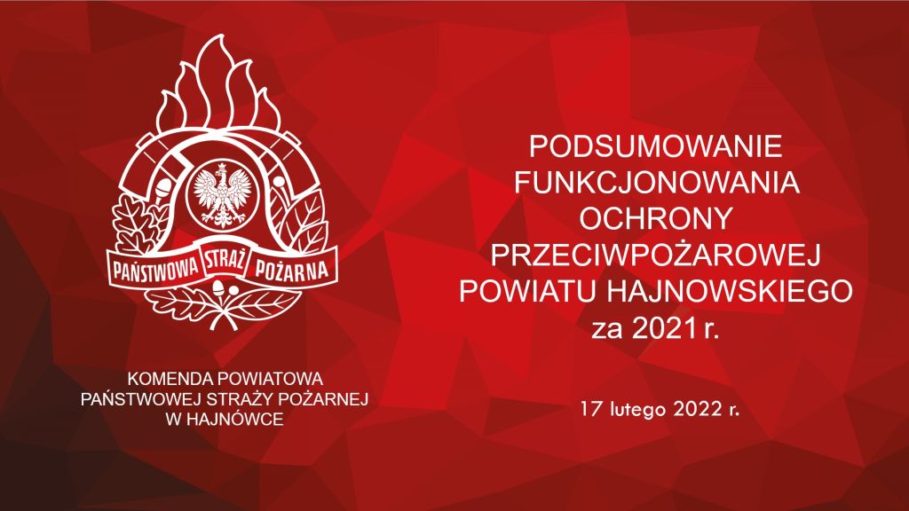 17 lutego 2022 roku w Komendzie Powiatowej Państwowej Straży Pożarnej w Hajnówce odbyła się narada roczna podsumowująca funkcjonowanie ochrony przeciwpożarowej na terenie powiatu hajnowskiego za rok 2021.