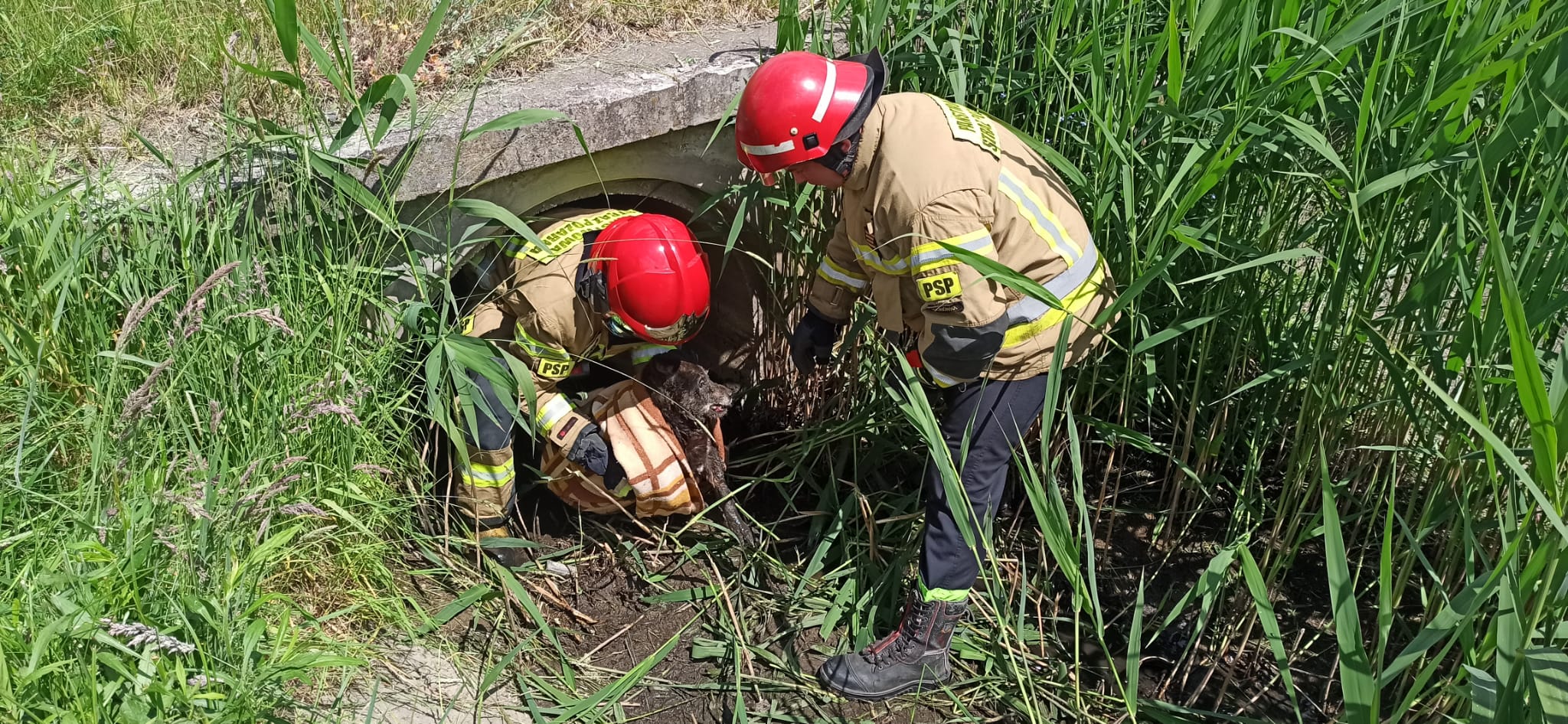 W niedzielę ok. godziny 12:30 strażacy z Jednostki Ratowniczo – Gaśniczej uczestniczyli w dość nietypowym zdarzeniu. Ewakuowali psa z zabłoconego przepustu pod drogą. Interwencja miała miejsce w Hajnówce przy ul. Spadowej. Pies, który wszedł do zabłoconego przepustu pod drogą z uwagi na grząski teren nie był w stanie wyjść o własnych siłach. Strażacy owinęli zwierzę w koc i wydostali z przepustu. Po ustaleniu opiekuna psa przekazano właścicielowi.