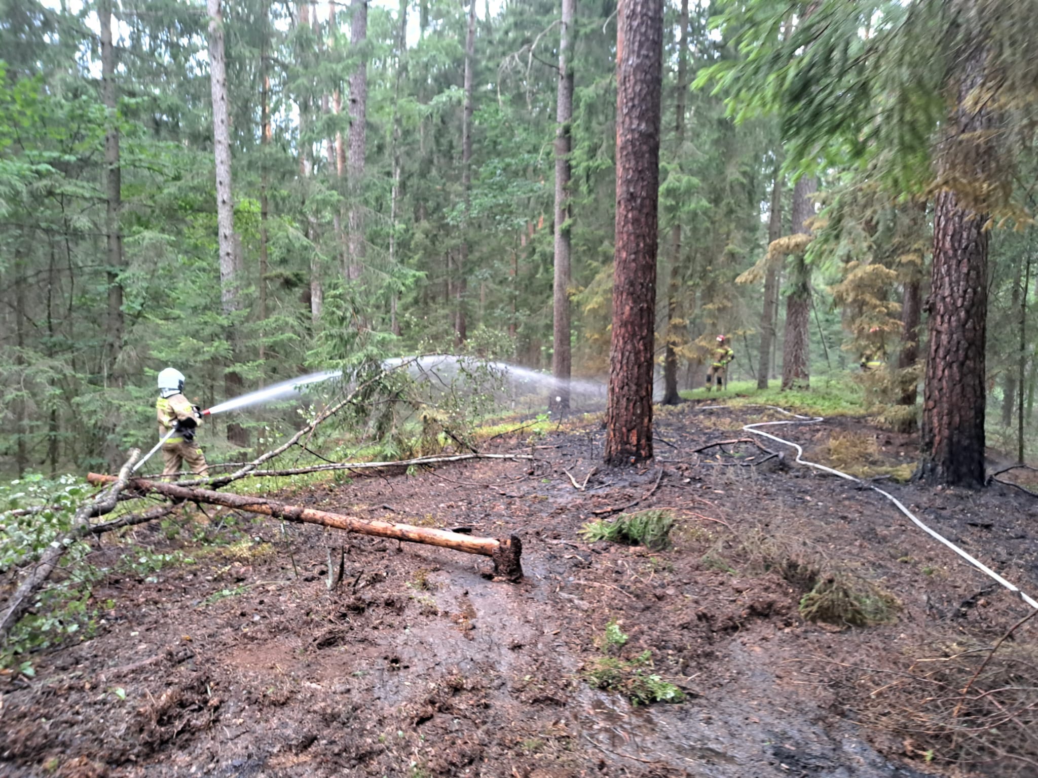 Pierwsze zdarzenie dotyczyło pożaru ściółki leśnej o powierzchni około 400 metrów kwadratowych w okolicy miejscowości Topiło, gm. Hajnówka. W zdarzeniu brały udział zastępy z JRG Hajnówka, OSP Orzeszkowo oraz OSP Werstok.