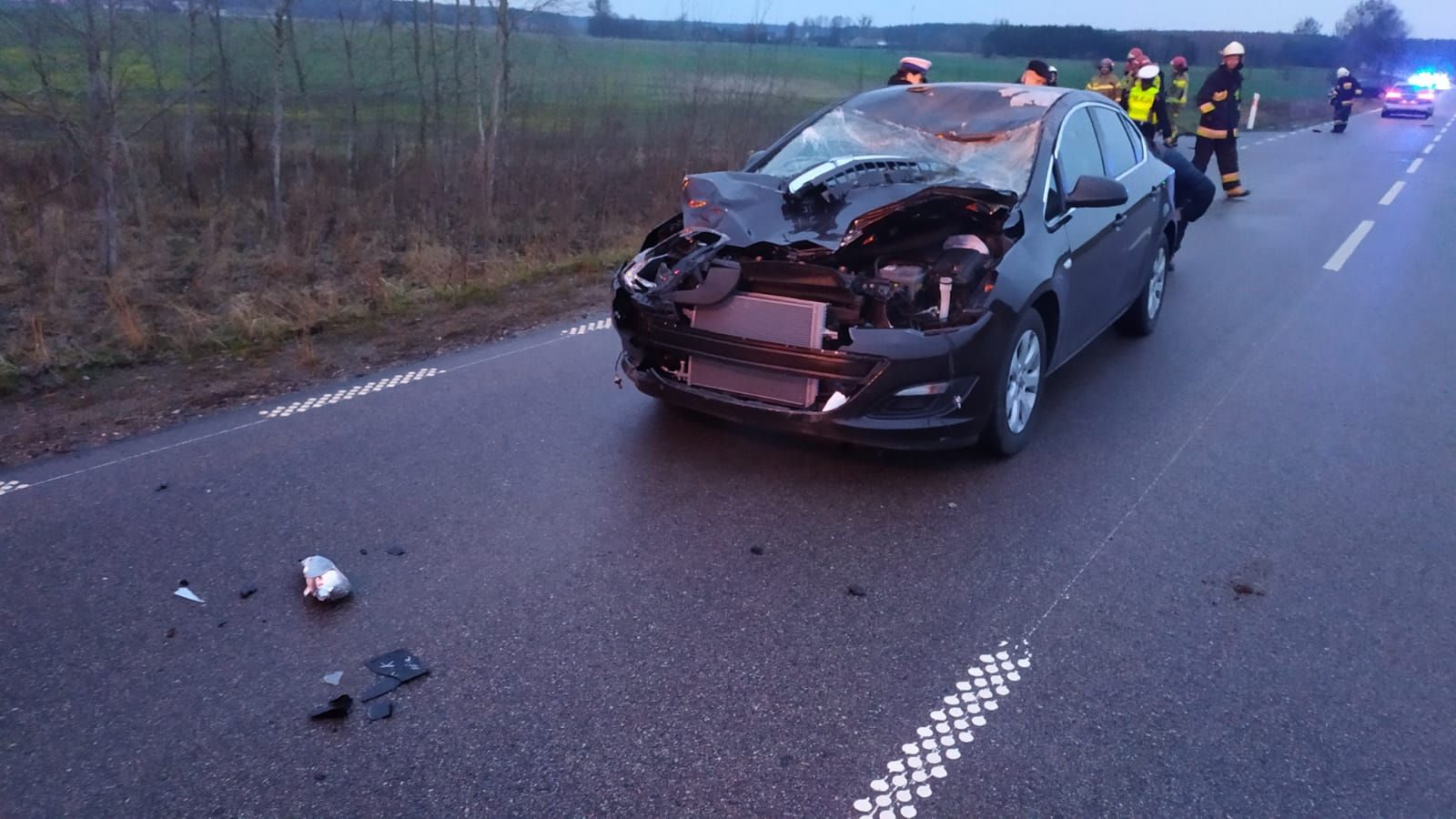 Trzy z pięciu zdarzeń drogowych dotyczyły zderzenia samochodów osobowych ze zwierzętami, dwa razy z łosiem i raz z żubrem.