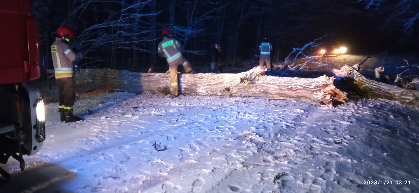 W wyniku warunków atmosferycznych: wiatr oraz opady śniegu, doszło do pięciu zdarzeń w których strażacy udrażniali drogi przecinając i usuwając powalone drzewa. Pierwsze zdarzenie odnotowano już wczesnym rankiem, ok. godz. 4:30, 20 stycznia 2023 r. na drodze wojewódzkiej Kleszczele – Dasze. Kolejnego dnia również wczesnym rankiem strażacy usuwali drzewa z dróg na drodze wojewódzkiej w okolicach Hajnówki, w okolicy miejscowości Budy, gm. Białowieża oraz w okolicy miejscowości Suchowolce, gm. Kleszczele.
