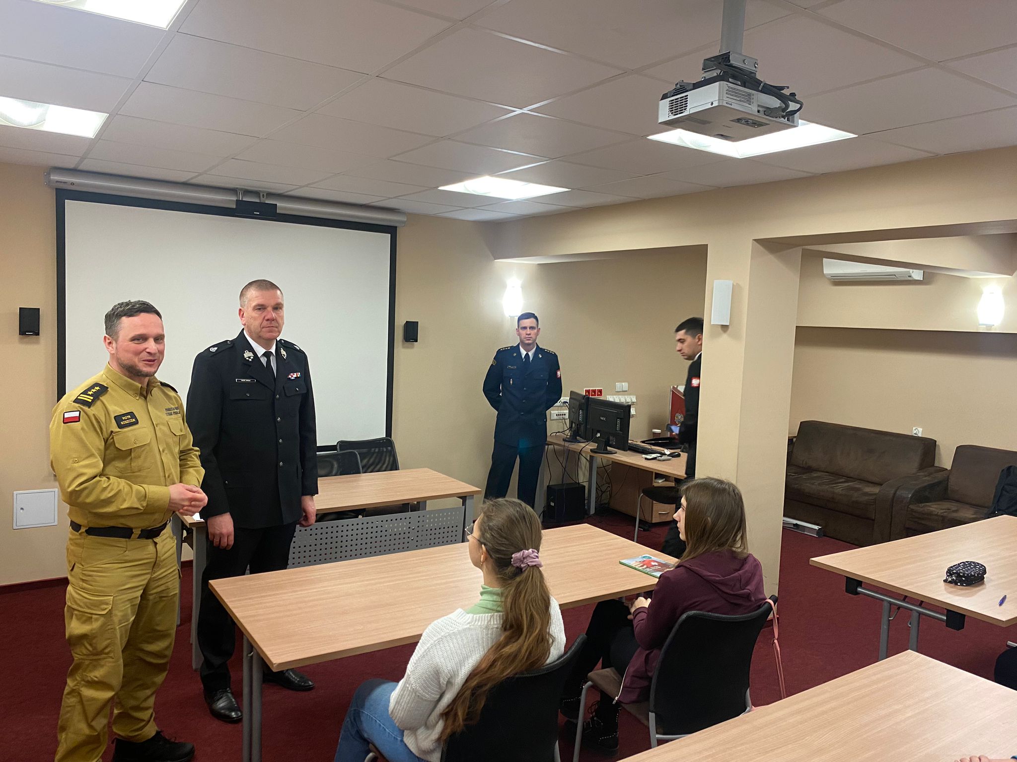 Wszyscy uczestnicy mieli również okazję do zapoznania się ze sprzętem będącym na wyposażeniu Jednostki Ratowniczo Gaśniczej, którym na co dzień posługują się ratownicy. Dodatkowo poznali specyfikę pracy w Stanowisku Kierowania Komendanta Powiatowego Państwowej Straży Pożarnej w Hajnówce.