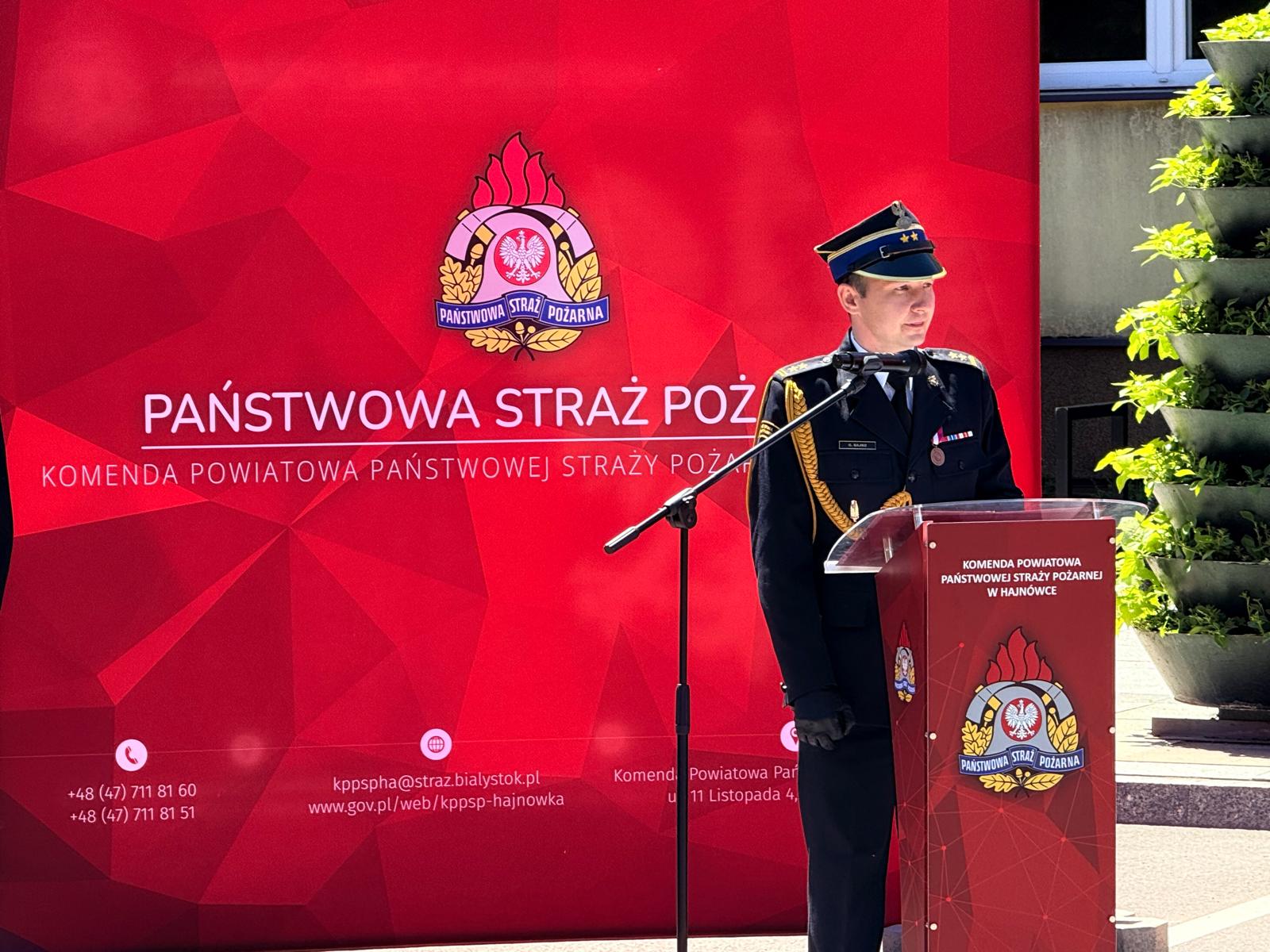 Apel, zgodnie z ceremoniałem pożarniczym, rozpoczął się od złożenia meldunku st. bryg. Grzegorzowi Lisowskiemu – Zastępcy Podlaskiego Komendanta Wojewódzkiego przez dowódcę uroczystości, podniesienia flagi państwowej oraz odegrania Hymnu Rzeczypospolitej Polskiej przez Orkiestrę Dętą Ochotniczej Straży Pożarnej w Hajnówce. Zaproszonych gości, sympatyków pożarnictwa oraz strażaków powitał Komendant Powiatowy Państwowej Straży Pożarnej w Hajnówce bryg. Grzegorz Bajko. Komendant w swoim wystąpieniu podziękował strażakom Państwowej Straży Pożarnej, druhom Ochotniczych Straży Pożarnych, służbom działającym na rzecz bezpieczeństwa mieszkańców powiatu, władzom samorządowym, przedstawicielom Lasów Państwowych i wszystkim tym, którym pomoc bliźnim i potrzebującym leży głęboko na sercu.