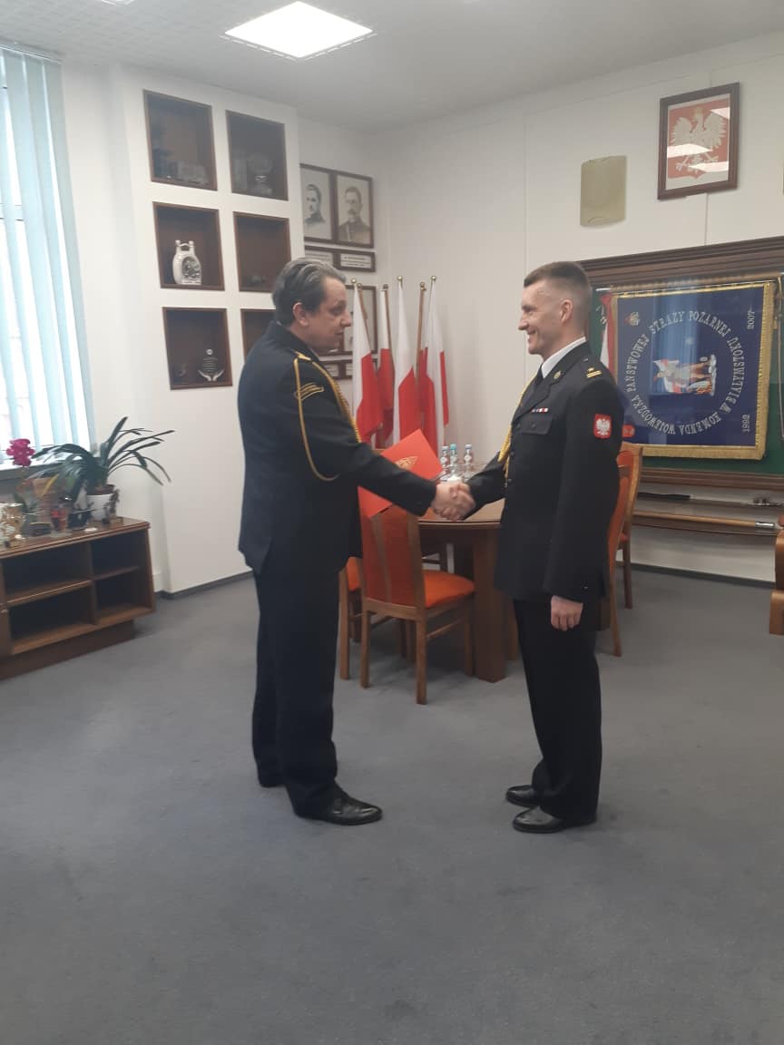 p.o. Podlaskiego Komendanta Wojewódzkiego Państwowej Straży Pożarnej st. bryg. Grzegorz Lisowski wręczył dziś mł. bryg. Piotrowi Sienkiewiczowi decyzję personalną o powierzeniu pełnienia obowiązków Komendanta Powiatowego PSP w Hajnówce z dniem 19 marca 2024 r.