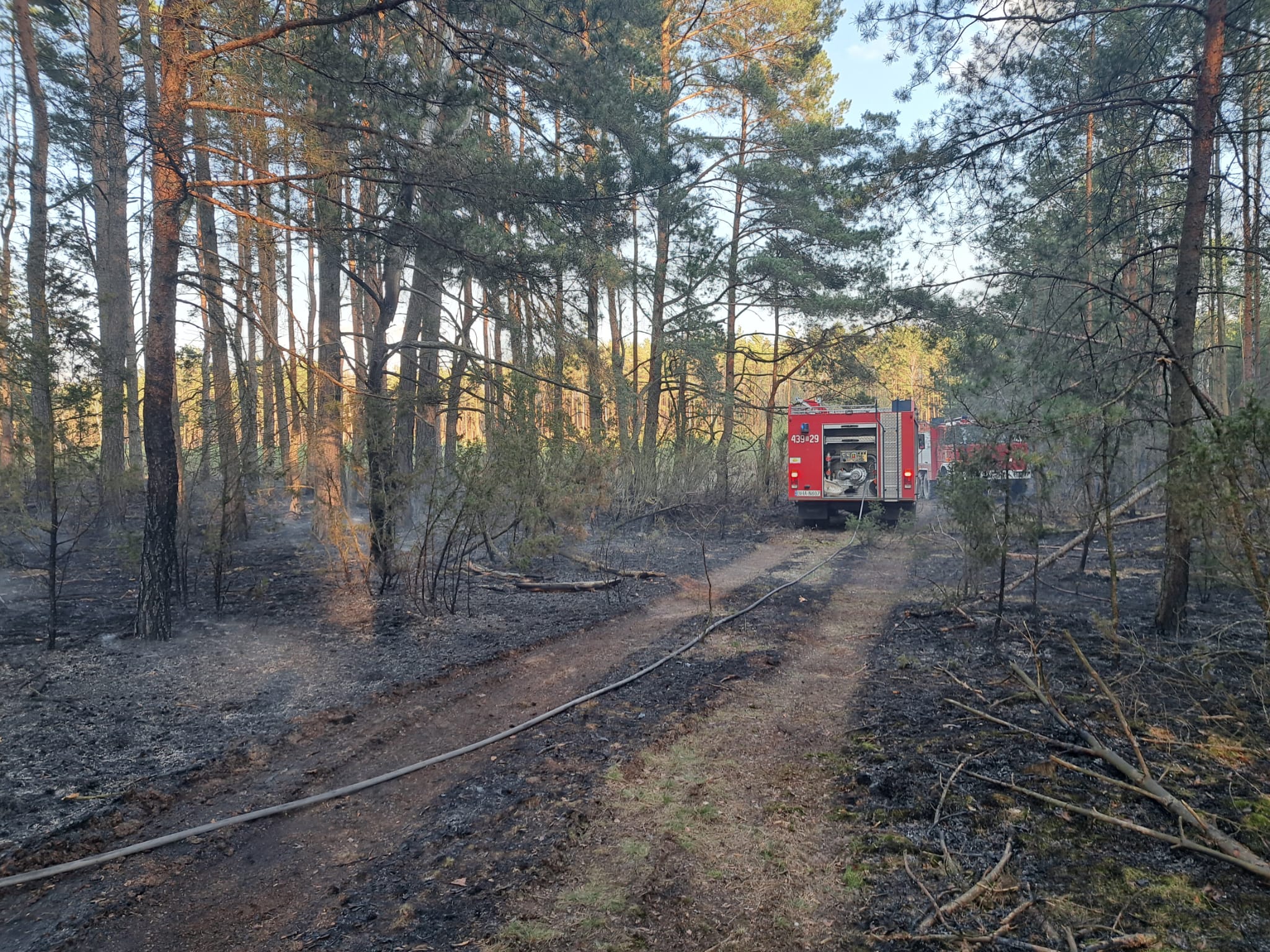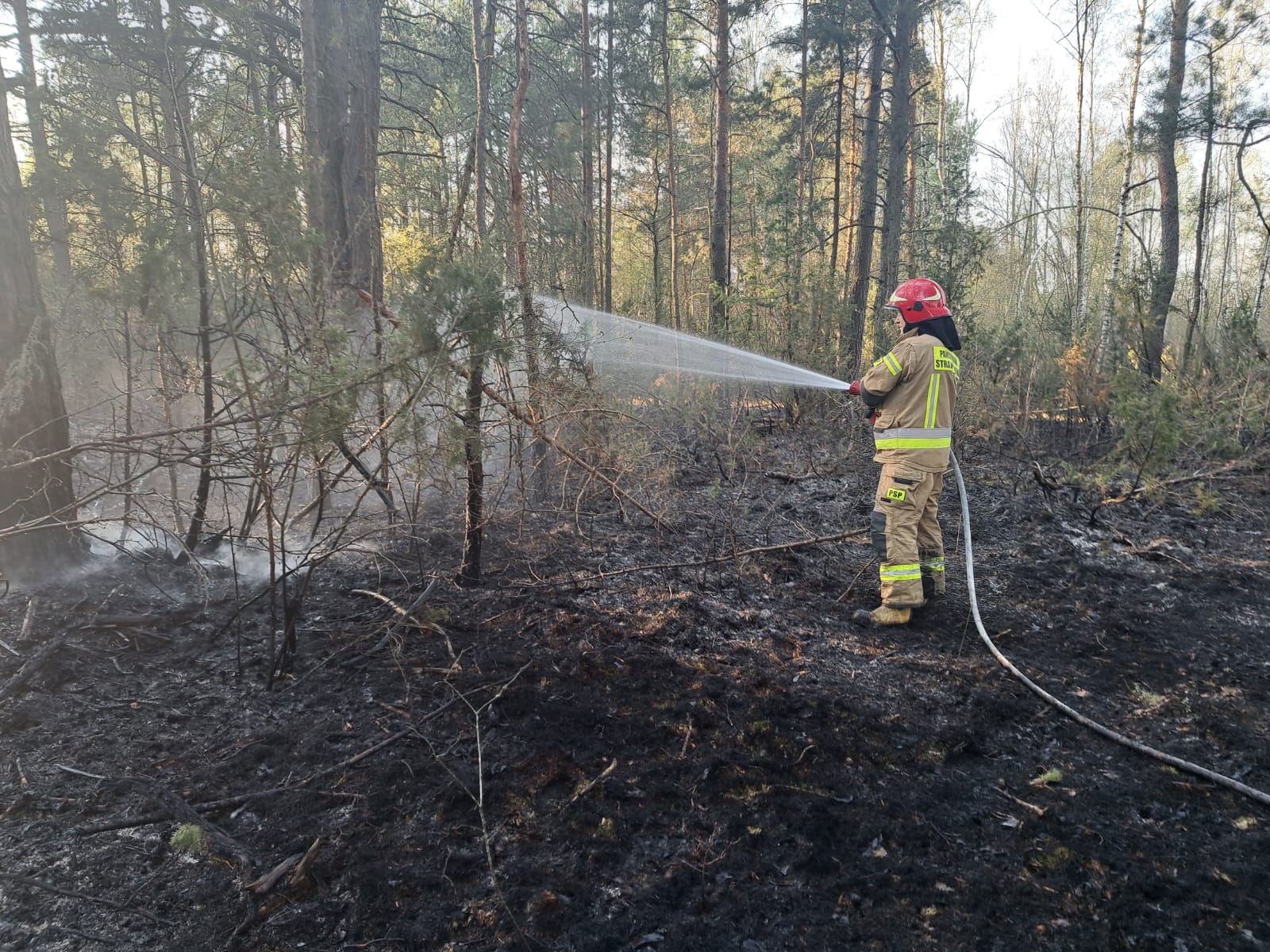 Do zdarzenia zadysponowano zastępy z Jednostki Ratowniczo Gaśniczej w Hajnówce oraz OSP Narew, OSP Klejniki, OSP Łosinka oraz OSP Czyże. Po dojeździe pierwszych zastępów stwierdzono, że pali się poszycie w młodniku na powierzchni około 2 ha. Działania zastępów polegały na zabezpieczeniu miejsca zdarzenia i podaniu dwóch prądów wody w natarciu na palące się poszycie w leśne. Na miejscu obecni byli pracownicy Nadleśnictwa Bielsk, którzy również uczestniczyli w działaniach używając podręcznego sprzętu gaśniczego. Po ugaszeniu pożaru całość pogorzeliska dokładnie sprawdzono i obficie przelano wodą w celu wyeliminowania ewentualnych zarzewi ognia. Woda do celów gaśniczych pobierana była ze zbiornika przeciwpożarowego znajdującego się na terenie leśnictwa Ploski, Nadleśnictwo Bielsk, usytuowanego w niewielkiej odległości od prowadzonych działań.