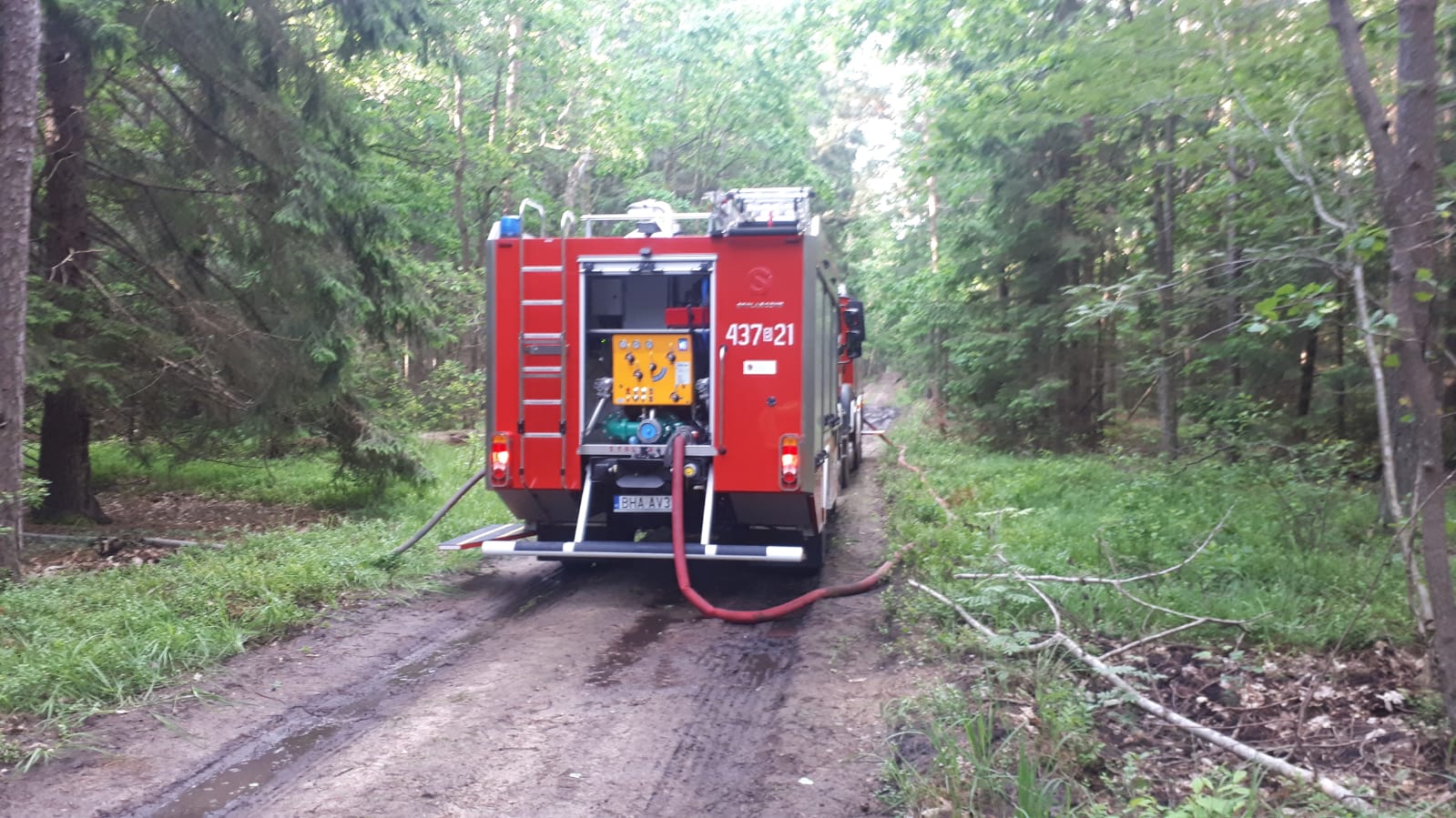 Działania pierwszych zastępów straży pożarnej polegały na zabezpieczeniu miejsca zdarzenia i budowie linii głównej do pierwszych ognisk pożaru znajdujących się w odległości ok. 300 m od drogi leśnej. Po przybyciu na miejsce zdarzenia kolejnych zastępów straży przystąpiono do budowy dwóch linii gaśniczych. Sukcesywnie podawano prądy wody na ogniska pożaru. Ze względu na obszar objęty pożarem i ilość leżących suchych drzew utrudniających przemieszczanie się strażakom na miejsce zadysponowano dodatkowe siły i środki.