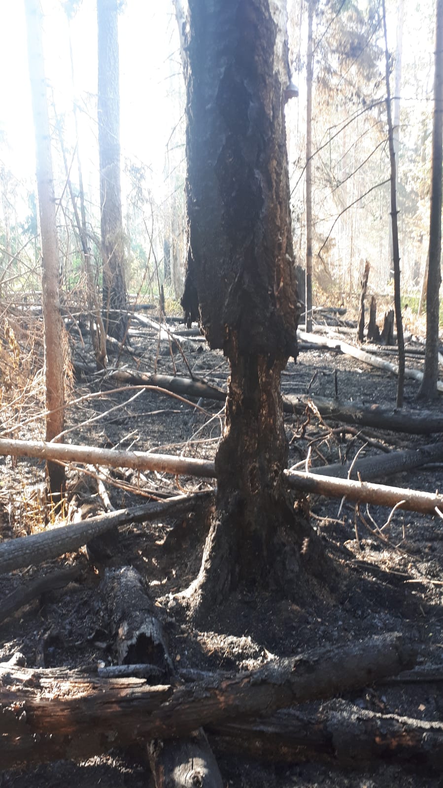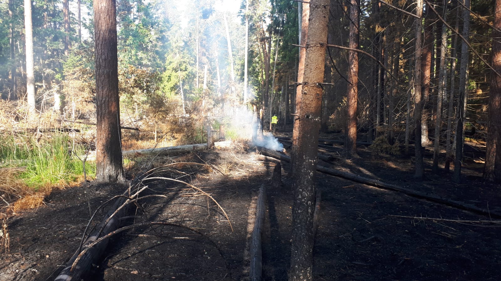 Działania gaśnicze prowadzono również przy użyciu podręcznego sprzętu burzącego. Dużym utrudnieniem w prowadzeniu działań była konieczność przycinania pni, leżących tlących się suchych drzew celem ich odwrócenia i przelania wodą. Służby Leśne aktywnie uczestniczyły w działaniach gaśniczych, wyposażone w hydronetki i szpadle dogaszały mniejsze zarzewia ognia.