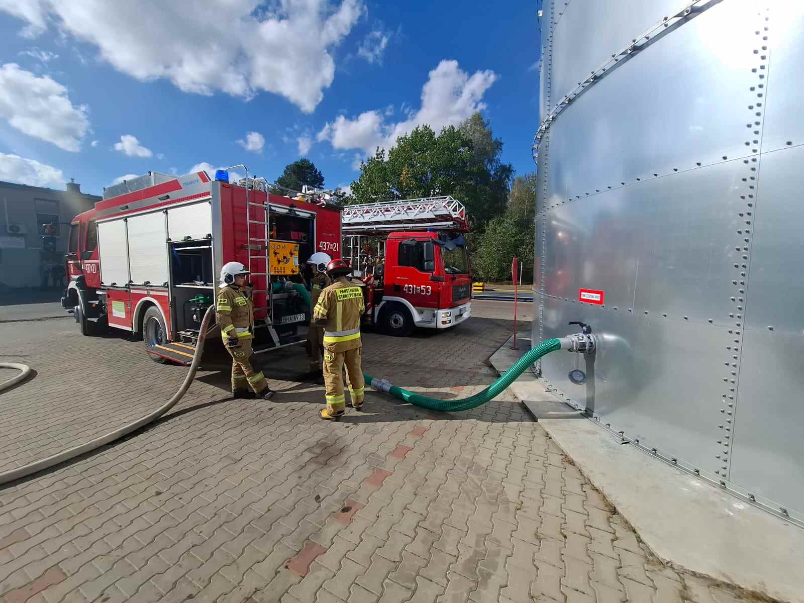 w znacznym stopniu ograniczyło rozwój pożaru. Ze względu na sytuację pożarową i duże zadymienie wszyscy pracownicy bezpiecznie ewakuowali się na zewnątrz budynku. Działania gaśnicze Jednostek Ochrony Przeciwpożarowej prowadzone były jednocześnie z dwóch kierunków - w hali z rozdrabniaczem oraz w hali składowania. Po 40 minutach pożar został opanowany jednak ze względu na prawdopodobieństwo ponownego zapalenia się rozdrobnionego materiału palnego konieczne było jego wywiezienie z hali składowania na zewnątrz i sukcesywne przelanie wodą. Działania gaśnicze, w których uczestniczyło 10 pojazdów pożarniczych i 34 strażaków Państwowej i Ochotniczych Straży Pożarnych trwały do późnych godzin nocnych i zakończyły się o godzinie 106.