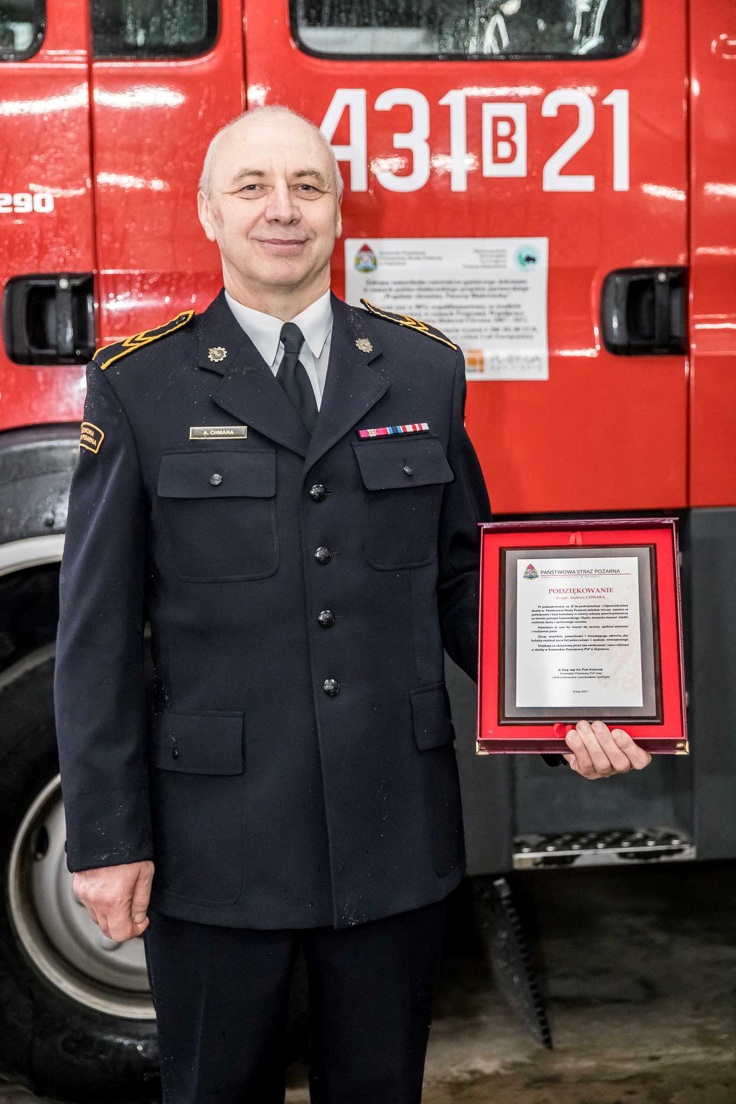 Podczas uroczystości Komendant Powiatowy Państwowej Straży Pożarnej w Hajnówce st. bryg. Piotr Koszczuk w imieniu swoim oraz wszystkich funkcjonariuszy i pracowników cywilnych podziękował za lata służby, za trud, wysiłek i zaangażowanie. Na emeryturze pożyczył dużo zdrowia oraz wszelkiej pomyślności w życiu osobistym.