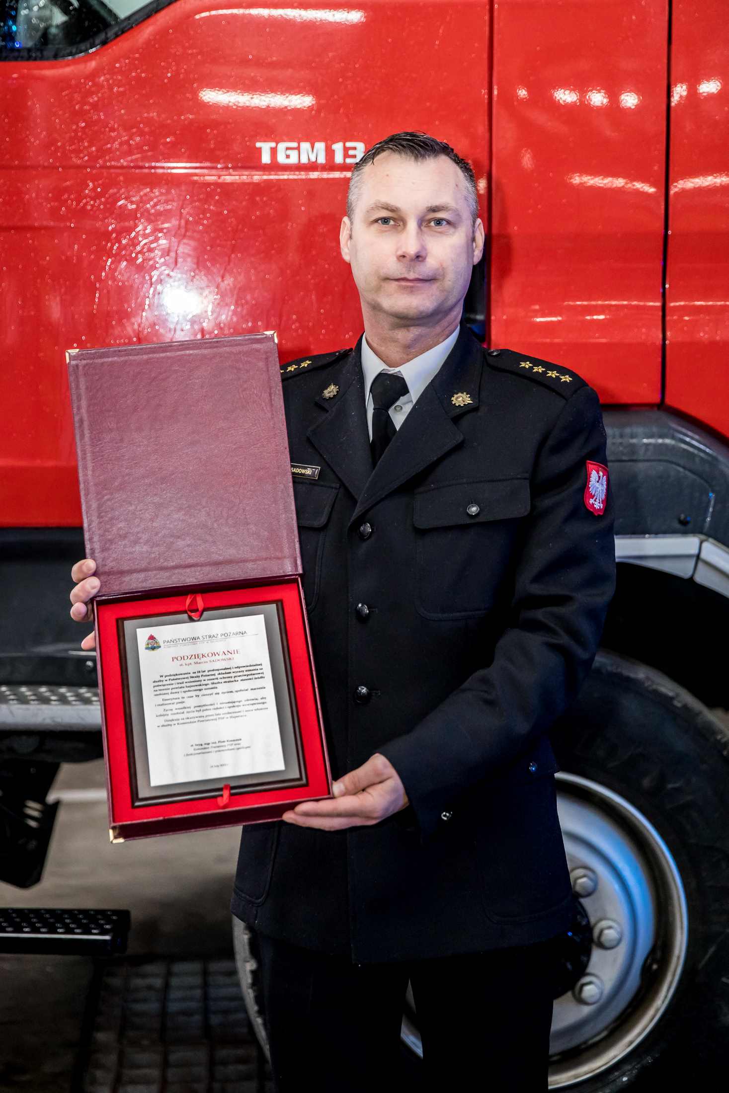 St. kpt. Marcin Sadowski służbę w szeregach Państwowej Straży Pożarnej rozpoczął 04 kwietnia 2006 r. w Komendzie Powiatowej PSP w Hajnówce. W 2013 r. ukończył Szkołę Aspirantów PSP w Krakowie. W latach 2013 – 2022 zajmował stanowisko Dyżurnego operacyjnego, a od listopada 2022 r. stanowisko Starszego Specjalisty w Wydziale Operacyjnym i Przeciwdziałania Zagrożeniom.