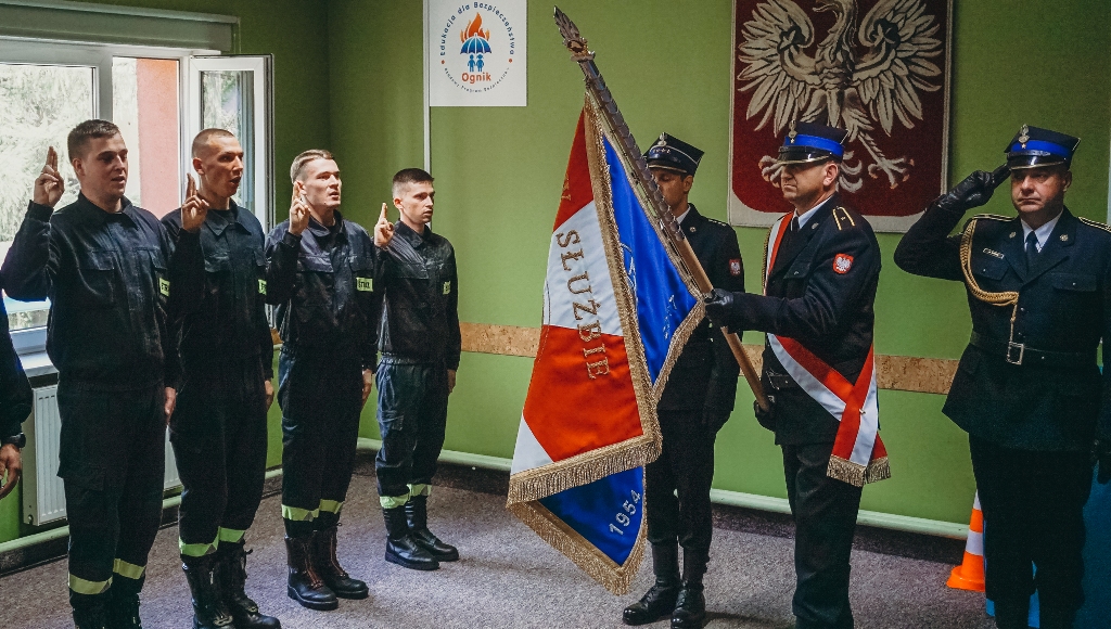 Dziś funkcjonariusze uroczyście ślubowali na sztandar Komendy Powiatowej PSP w Hajnówce według następującej roty: „Ja, obywatel Rzeczypospolitej Polskiej, świadom podejmowanych obowiązków strażaka, uroczyście ślubuję być ofiarnym i mężnym w ratowaniu zagrożonego życia ludzkiego i wszelkiego mienia - nawet z narażeniem życia. Wykonując powierzone mi zadania, ślubuję przestrzegać prawa, dyscypliny służbowej oraz wykonywać polecenia przełożonych. Ślubuję strzec tajemnic związanych ze służbą, a także honoru, godności i dobrego imienia służby oraz przestrzegać zasad etyki zawodowej”.