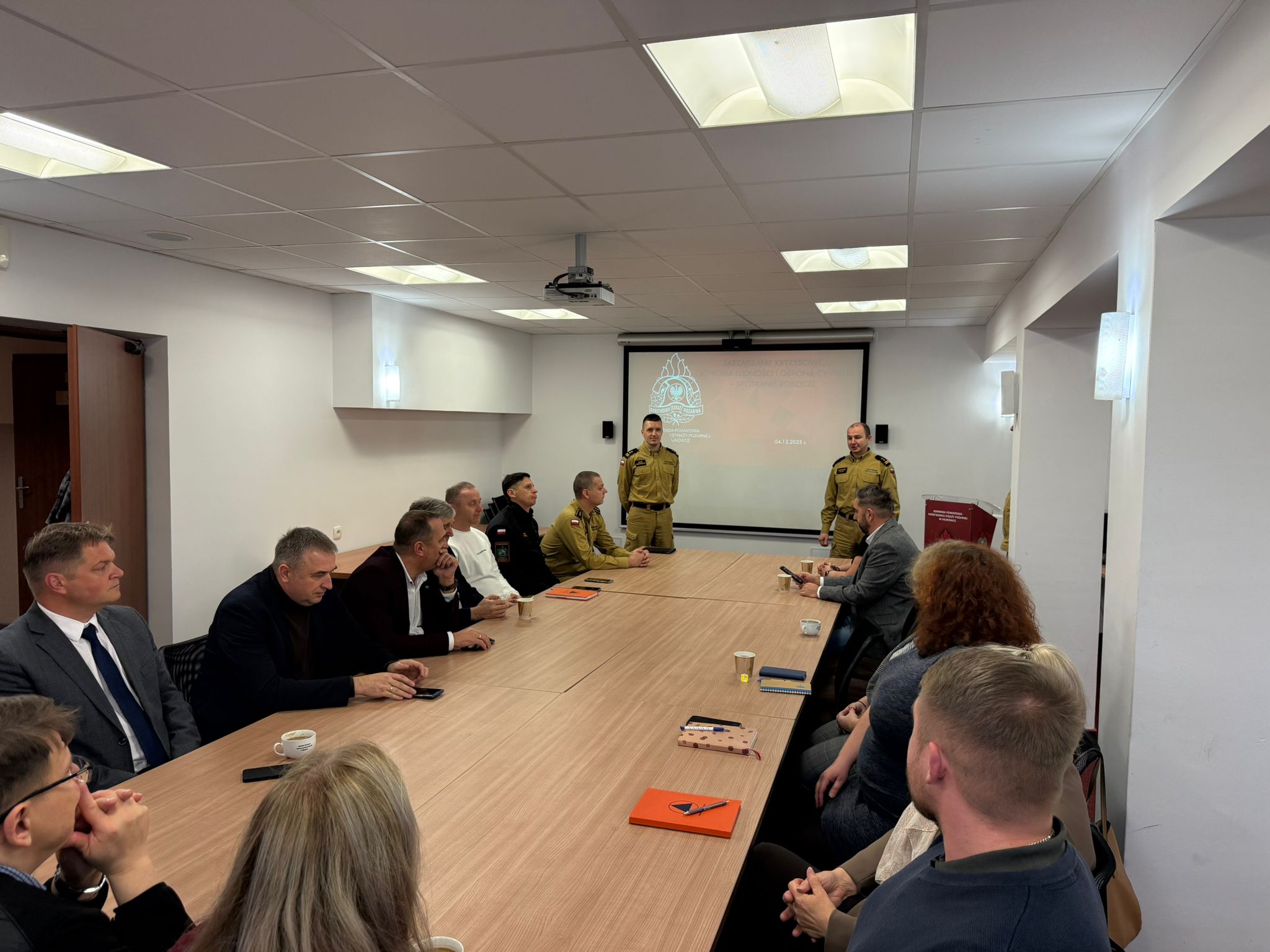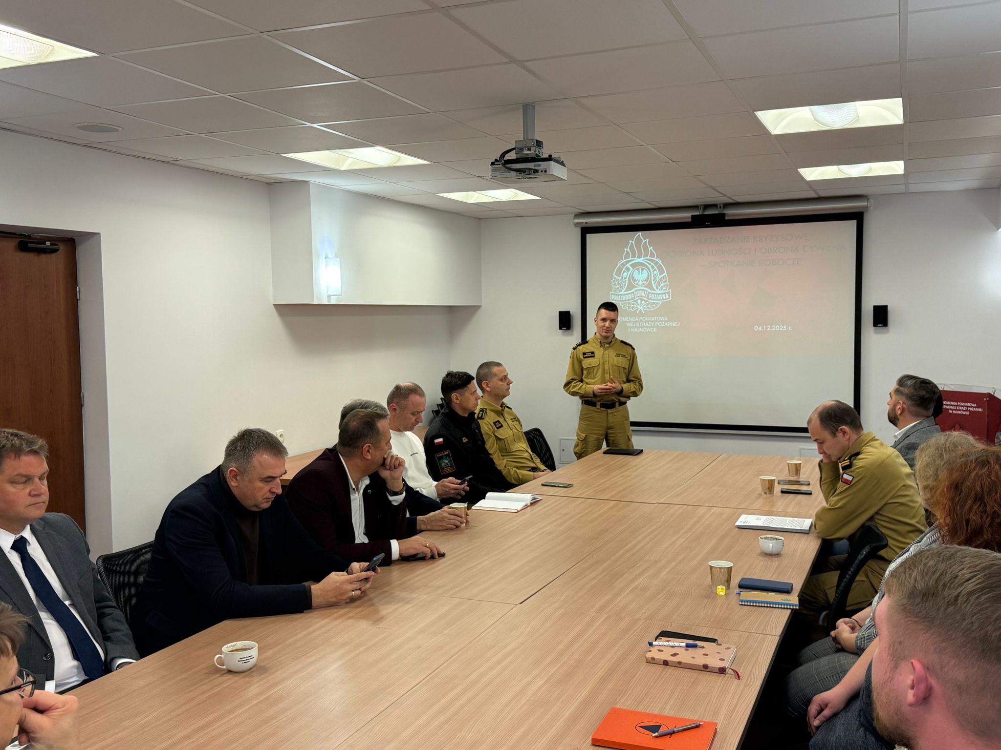 4 grudnia 2025 r. w Komendzie Powiatowej PSP w Hajnówce odbyło się spotkanie robocze kierownictwa i kadry Komendy z burmistrzami, wójtami oraz pracownikami urzędów odpowiedzialnymi za sprawy związane z zarządzaniem kryzysowym oraz ochroną ludności i obroną cywilną.