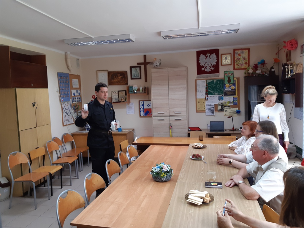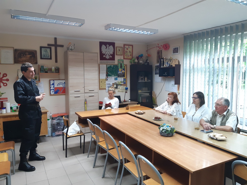 Tematyka spotkania dotyczyła najczęstszych zagrożeń występujących w gospodarstwach domowych, zalet wynikających ze stosowania czujek dymu, tlenku węgla i gazu oraz obowiązków właścicieli i użytkowników obiektów z zakresu bezpieczeństwa pożarowego. Ponadto, członkowie stowarzyszenia dowiedzieli się jak prawidłowo reagować w sytuacji zagrożenia, w jaki sposób powiadomić służby ratunkowe oraz jak udzielić pierwszej pomocy. W spotkaniu uczestniczyło 8 osób.