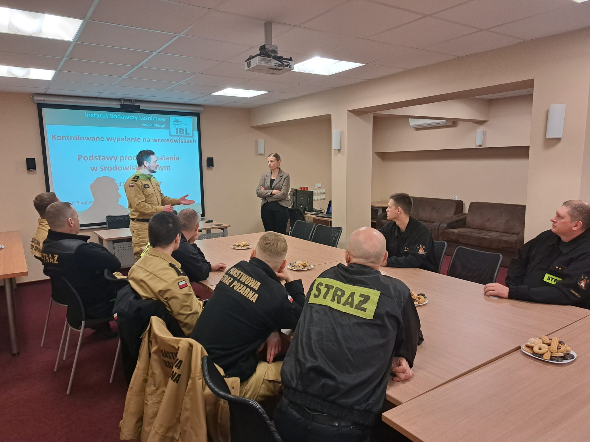 Szkolenie w którym udział wzięli również funkcjonariusze Komendy Powiatowej Państwowej Straży Pożarnej w Augustowie przeprowadziła Pani dr inż. Ewa Zin z Instytutu Badawczego Leśnictwa.
