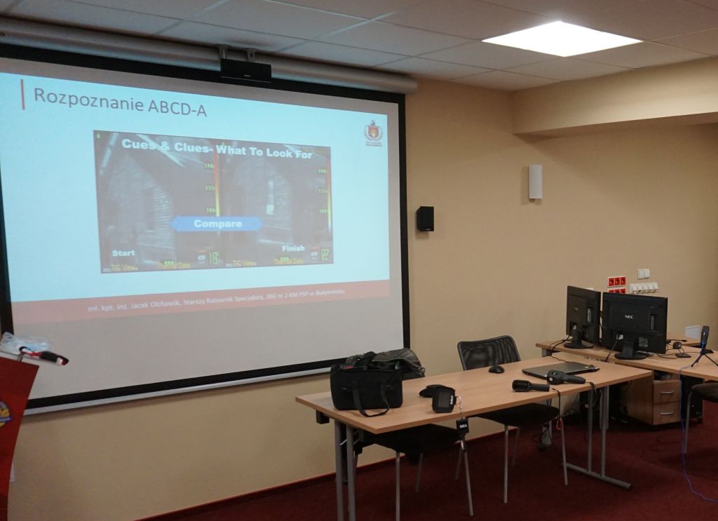 Podczas szkolenia przeprowadzonego przez specjalistów z firmy Armatec zostały przedstawione zasady działania, taktyka oraz sposobów użycia różnego rodzaju kamer termowizyjnych podczas akcji ratowniczo – gaśniczych.
