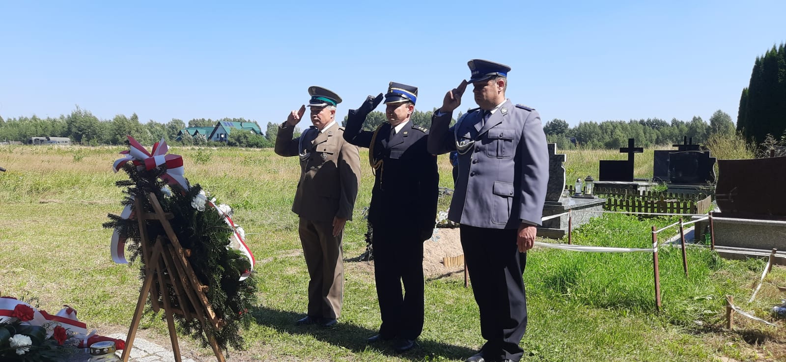 W ramach obchodów Święta Wojska Polskiego bryg. Grzegorz Bajko Zastępca Komendanta Powiatowego Państwowej Straży Pożarnej w Hajnówce uczestniczył również w uroczystościach przy pomniku - mogile na cmentarzu w Białowieży.