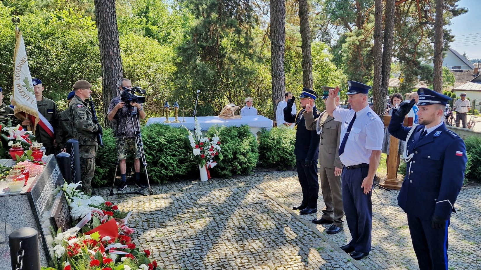 15 sierpnia 2023 r. przy Pomniku – Krzyżu na Międzytorach w Hajnówce zebrali się przedstawiciele władz samorządowych, służb mundurowych i Wojska Polskiego, duchowni oraz mieszkańcy miasta.