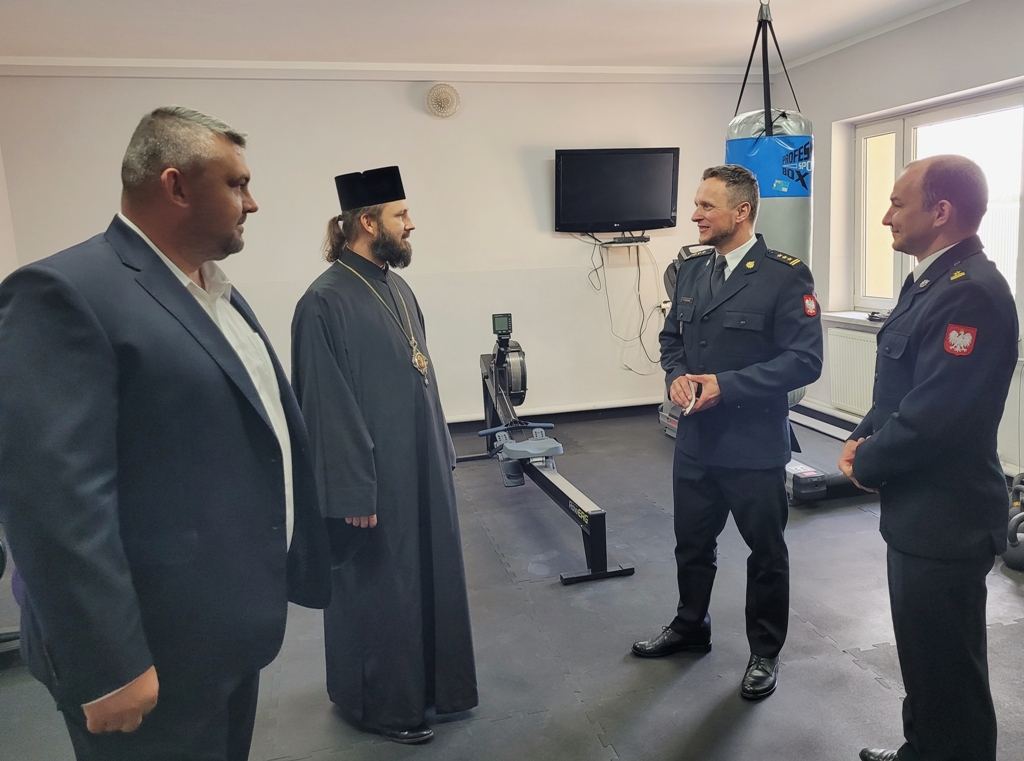 Biskup zapoznał się ze specyfiką służby w Państwowej Straży Pożarnej oraz specyfiką zagrożeń powiatu hajnowskiego. Podczas wizyty strażacy przedstawili sprzęt jaki na co dzień wykorzystują w działaniach ratowniczych. Następnie zaprezentowano budynek Komendy PSP w Hajnówce oraz Jednostki Ratowniczo – Gaśniczej w Hajnówce w szczególności Stanowisko Kierowania Komendanta Powiatowego PSP w Hajnówce, salę edukacyjną „Ognik”, siłownię oraz pomieszczenia socjalne strażaków pełniących służbę w systemie zmianowym. Omówiono również plany dotyczące modernizacji Komendy Powiatowej PSP w Hajnówce.