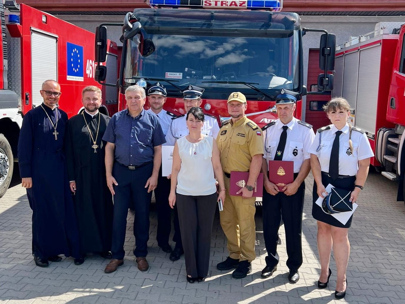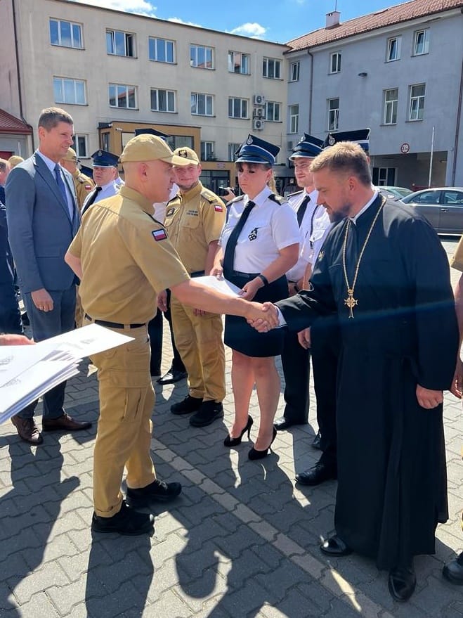 Następnie przekazano pojazdy pożarnicze. Komenda Powiatowa Państwowej Straży Pożarnej w Hajnówce otrzymała ciężki samochód ratowniczo- gaśniczy Volvo GCBA 4,1/32 natomiast Jednostka Ochotniczej Straży Pożarnej w Werstoku otrzymała średni samochód ratowniczo - gaśniczy Mercedes GBA 2,5/24, stanowiący wcześniej wyposażenie Posterunku Jednostki Ratowniczo Gaśnicze w Czeremsze.
