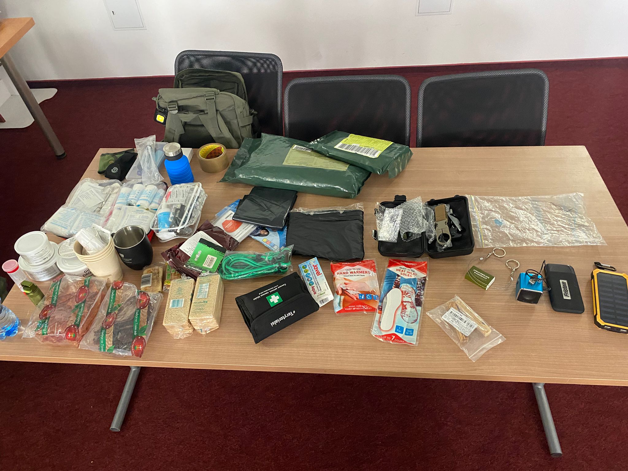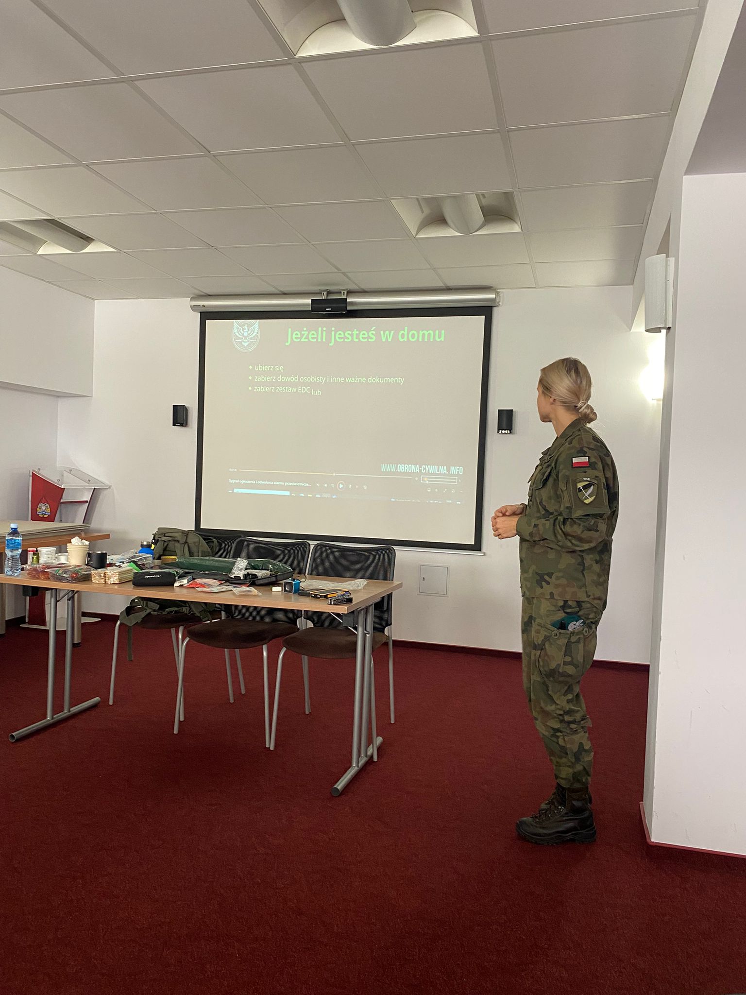 Ważnym elementem szkoleń jest prezentacja plecaka ewakuacyjnego – przywożonego przez instruktorów WCR – wraz z omówieniem jego wyposażenia oraz zastosowania. Uczestnicy mają możliwość zapoznania się z praktycznymi rozwiązaniami oraz zasadami kompletowania indywidualnego zestawu ewakuacyjnego na wypadek zagrożenia.