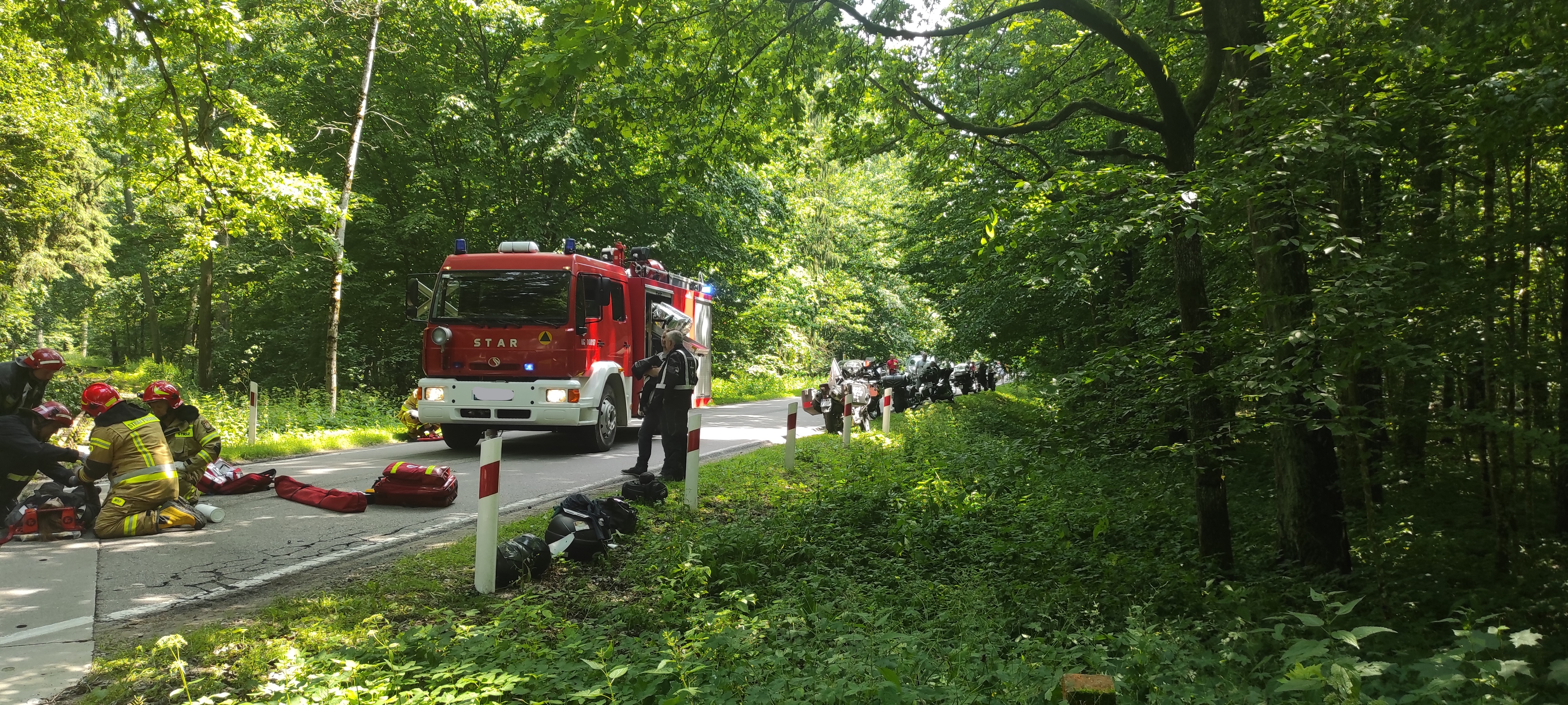 W przeciągu ostatni dwóch dni na terenie powiatu hajnowskiego odnotowano dwa wypadki w komunikacji drogowej. Pierwszy miał miejsce we wtorek 06 lipca 2021 r., gdzie w pobliżu jednostki wojskowej na drodze wojewódzkiej 689 na trasie Hajnówka-Białowieża doszło do wypadku z udziałem motocyklisty i samochodu dostawczego. Motocyklem podróżowały dwie osoby w wyniku upadku na przejeździe kolejowym pasażerka spadła z motocykla uderzając w bok samochodu dostawczego jadącego w przeciwnym kierunku. Działania zastępu straży polegały na zabezpieczeniu miejsca zdarzenia oraz udzieleniu kwalifikowanej pierwszej pomocy osobie poszkodowanej, która była przytomna. W trakcie prowadzonych działań na miejsce przybył Zespół Ratownictwa Medycznego który przejął poszkodowaną.
