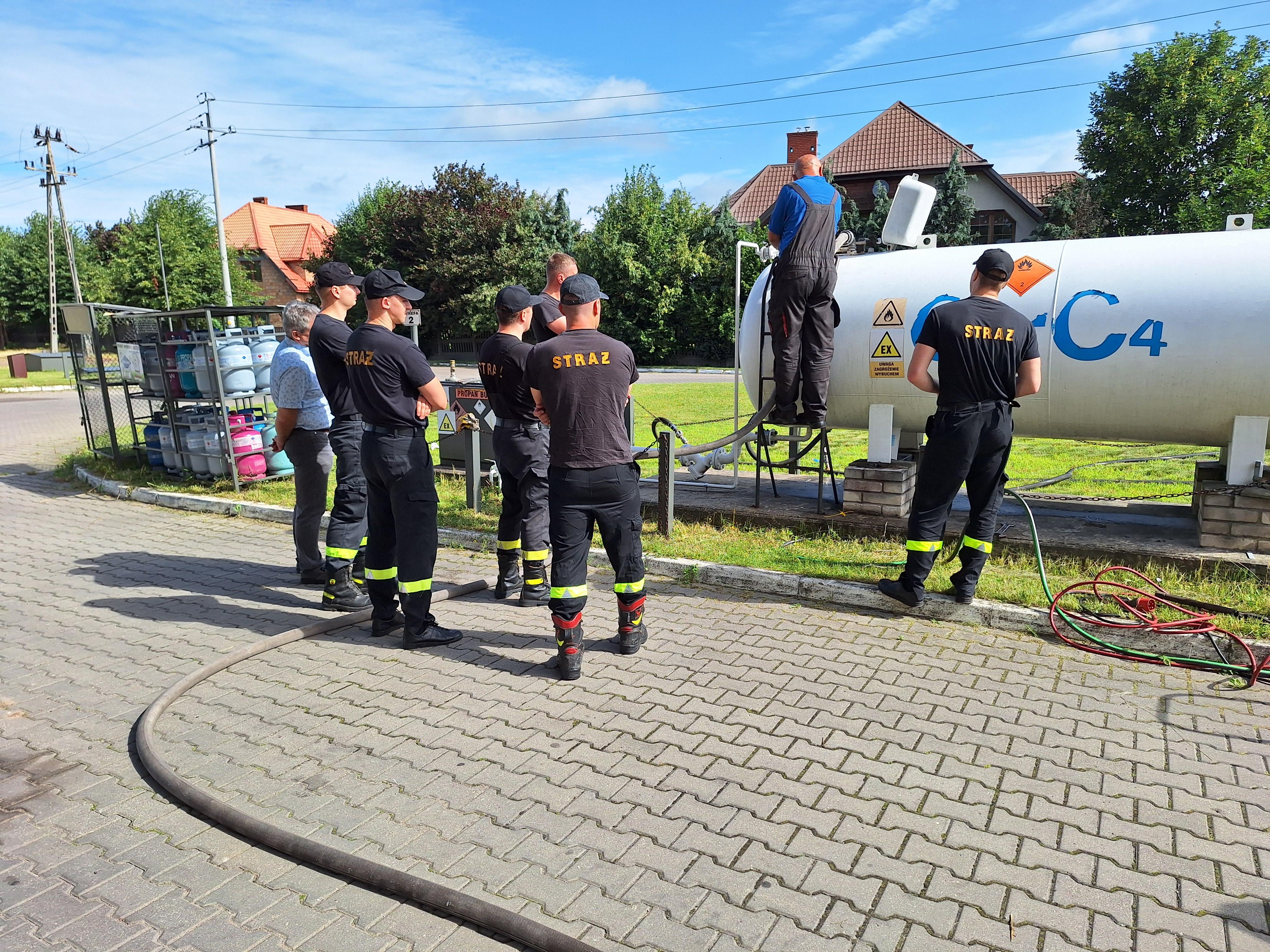 01.07.2024 roku na terenie jednej ze stacji paliw strażacy z Jednostki Ratowniczo – Gaśniczej w Hajnówce uczestniczyli w zajęciach szkoleniowych dotyczących stacji LPG.