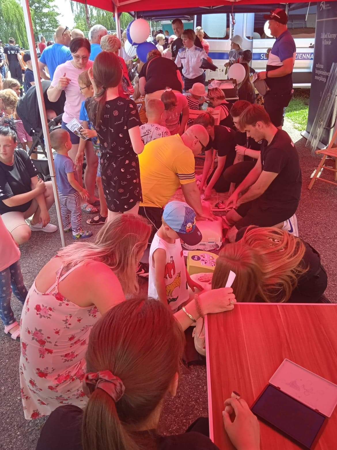 Strażackie stoisko odwiedziły setki uczestników pikniku, a dla osób, które w praktyczny sposób przystąpiły do prób resuscytacji organizatorzy przygotowali nagrody.