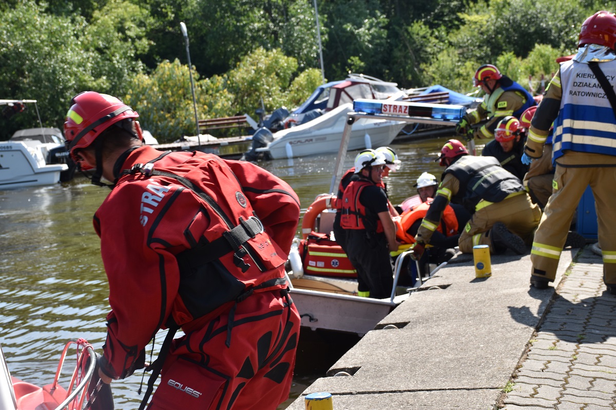 Scenariusz ćwiczeń zakładał, że w pobliżu slipu Yamaha Marine w Iławie w wyniku wybuchu i pożaru jachtu motorowego załoga wypadła do wody. Dwie osoby poszkodowane unoszą się na wodzie, natomiast trzecia znajduje się pod wodą.