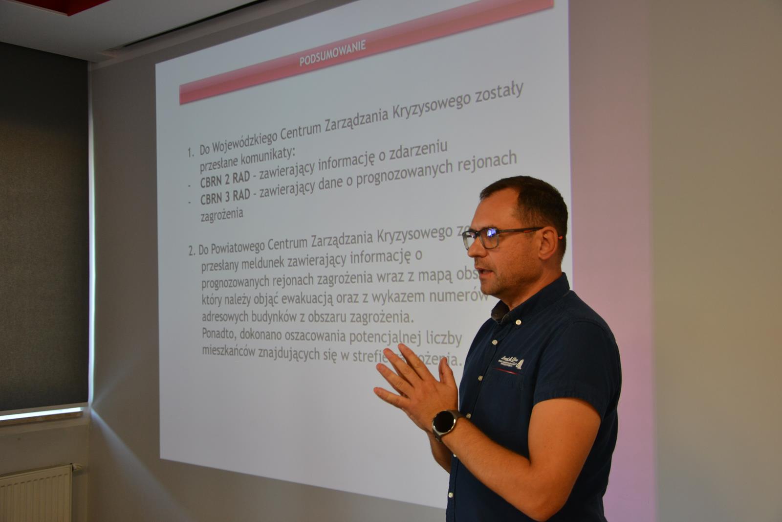 w ograniczonym zakresie przedstawiciele powiatowych instytucji, służb i inspekcji. Głównym zadaniem ćwiczeń było sprawdzenie funkcjonowania Stałego Dyżuru Starosty, skuteczność procesu uruchamiania i funkcjonowania systemu wykrywania skażeń i alarmowania, działanie służb