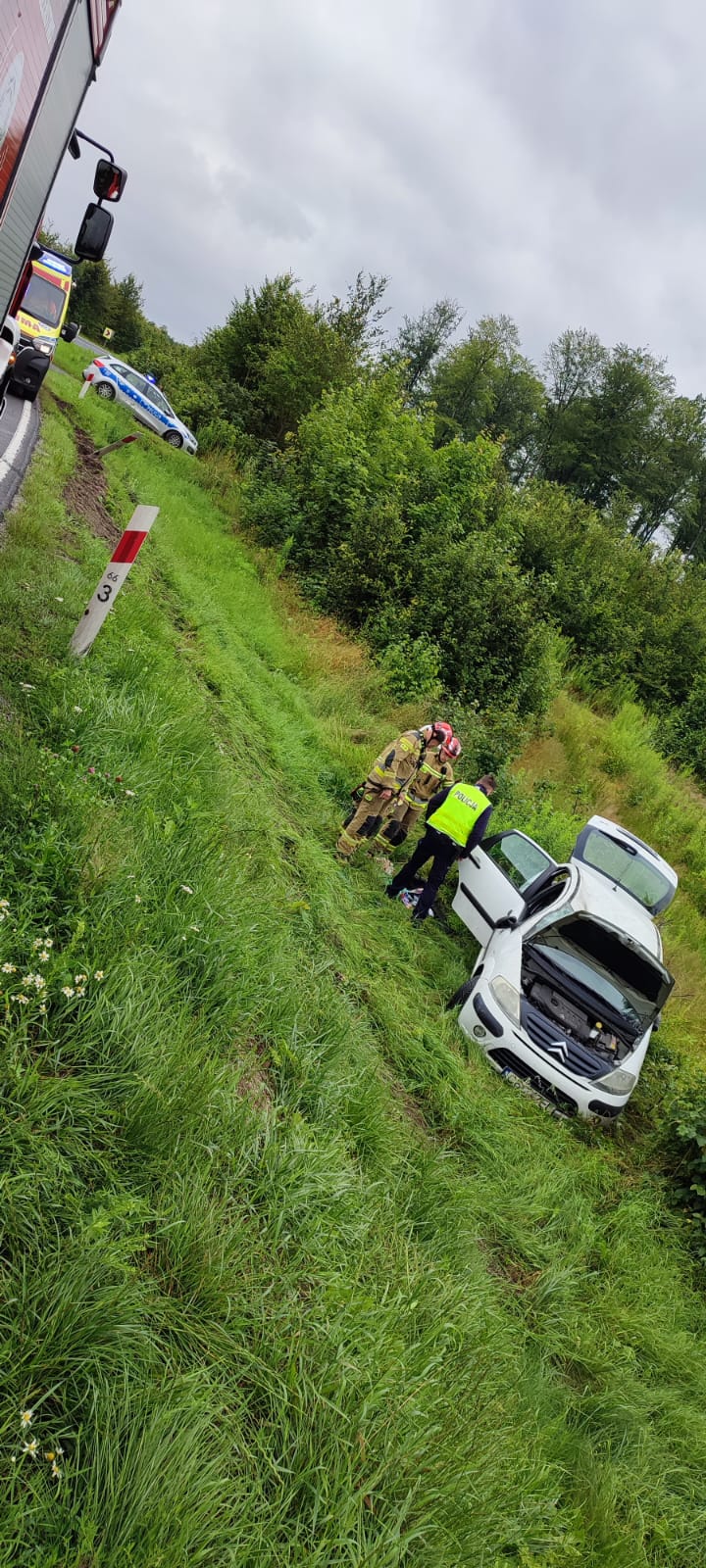 Dnia 22.07.2025 miały miejsce dwa niebezpieczne zdarzenia na drodze krajowej nr 16. O godz. 12:47 strażacy KP PSP w Iławie i OSP Stradomno zostali powiadomieni o wypadku samochodu osobowego na drodze dojazdowej do miejscowości Stradomno. Pojazdem który dachował i zjechał z drogi do rowu podróżowały dwie dorosłe kobiety. Nie odniosły żadnych obrażeń. Działania strażaków polegały na zabezpieczeniu miejsca zdarzenia, wahadłowym kierowaniu ruchem drogowym oraz odłączeniu akumulatora w pojeździe.