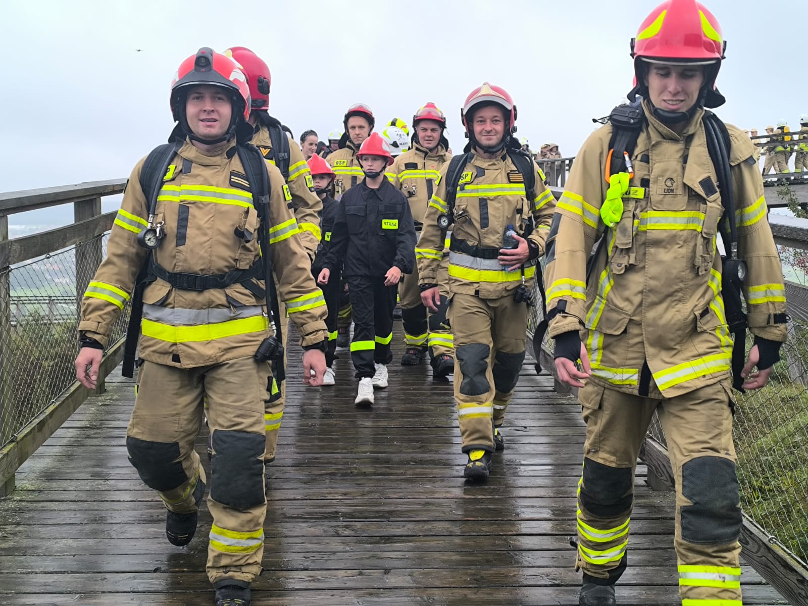 W ośrodku narciarskim na Kurzej Górze przedstawiciele 34 jednostek PSP i OSP – łącznie 250 strażaków przemaszerowało przez drewnianą ścieżkę wieży widokowej na dystansie 2 kilometrów.