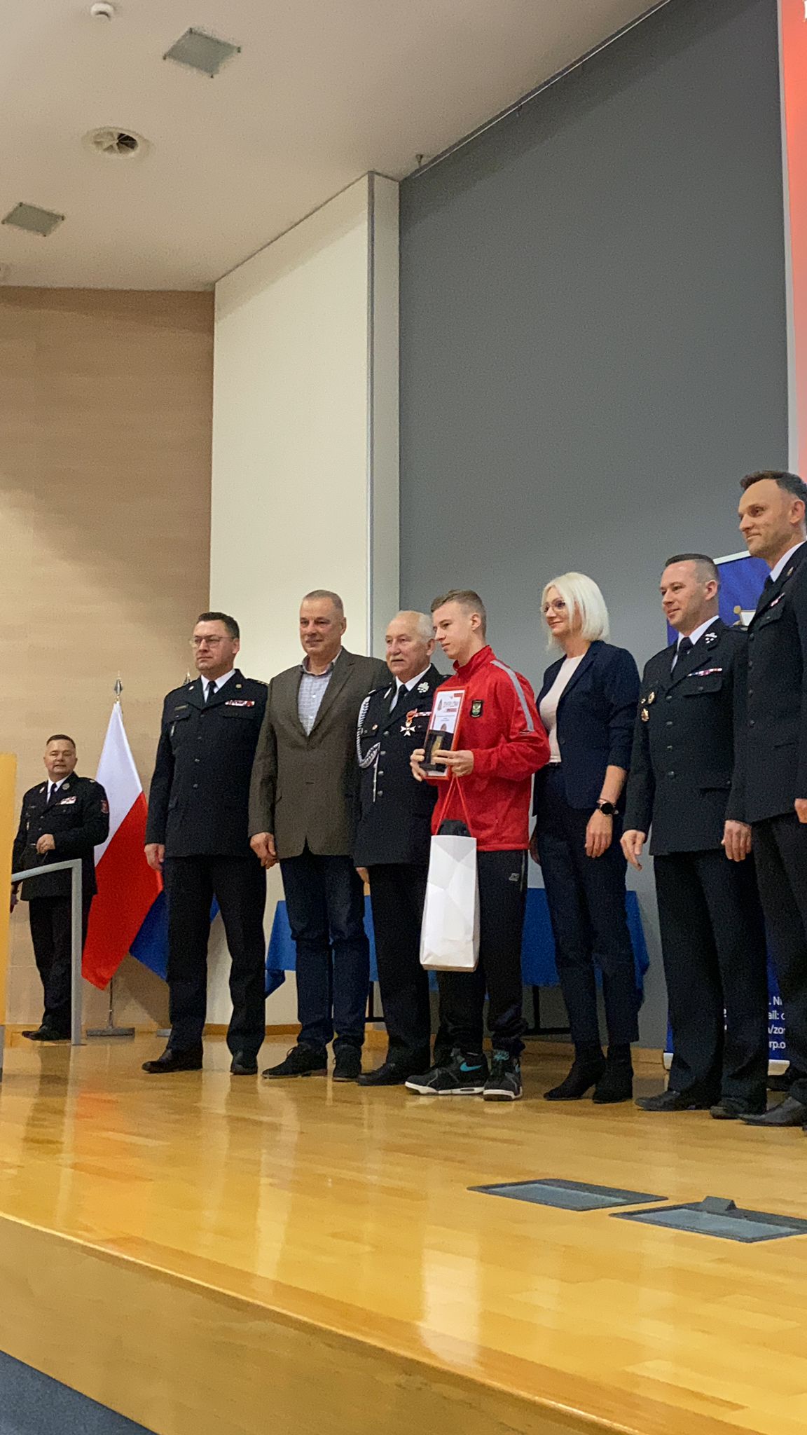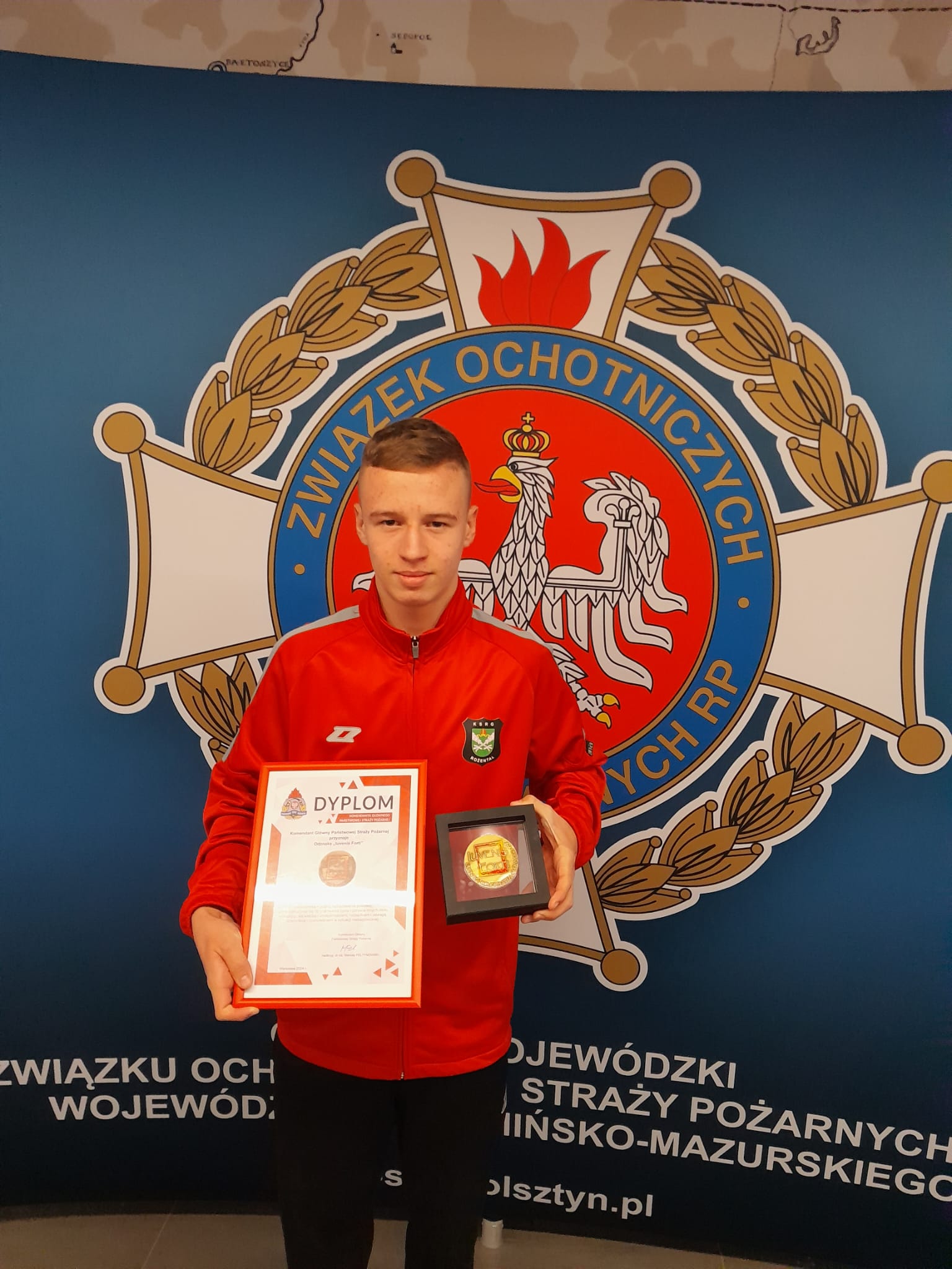 Spotkanie było też okazją do wręczenia Odznaki „Iuvenis Forti” dla Filipa Szauer młodego strażaka z jednostki OSP Rożental w powiecie iławskim. Odznaka „Iuvenis Forti” przyznawana jest młodym ludziom, którzy swoją wzorową – godną do naśladowania postawą przyczynili się do uratowania życia i zdrowia innych osób, wykazując się wiedzą i umiejętnościami, rozsądkiem i odwagą, dzielnością i opanowaniem w sytuacji niebezpiecznej.