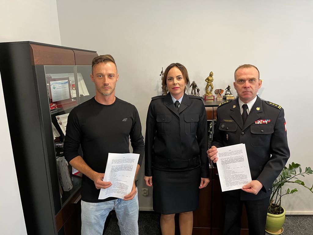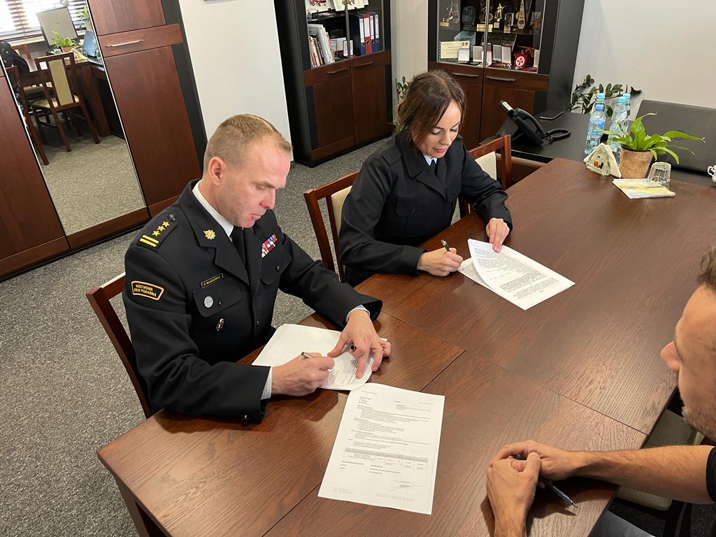 Umowę podpisał komendant powiatowy PSP w Iławie st. bryg. Piotr Wlazłowski oraz główny księgowy str. Milena Czajka a stronę wykonawcy, firmę HD Inwest z Iławy reprezentował Panem Tomasz Haska.