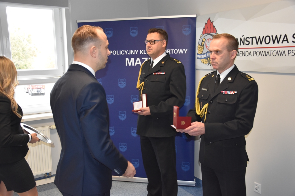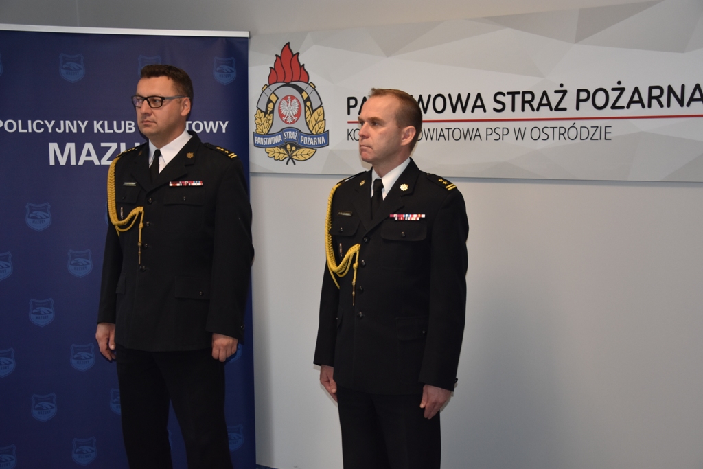 Policyjny Klub Sportowy „Mazury” odznaczył Złotym Medalem Zasługi PKS „Mazury” Komendanta Powiatowego PSP bryg. Piotra Wlazłowskiego oraz st. bryg. Tomasza Ostrowskiego Komendanta Powiatowego PSP w Ostródzie.