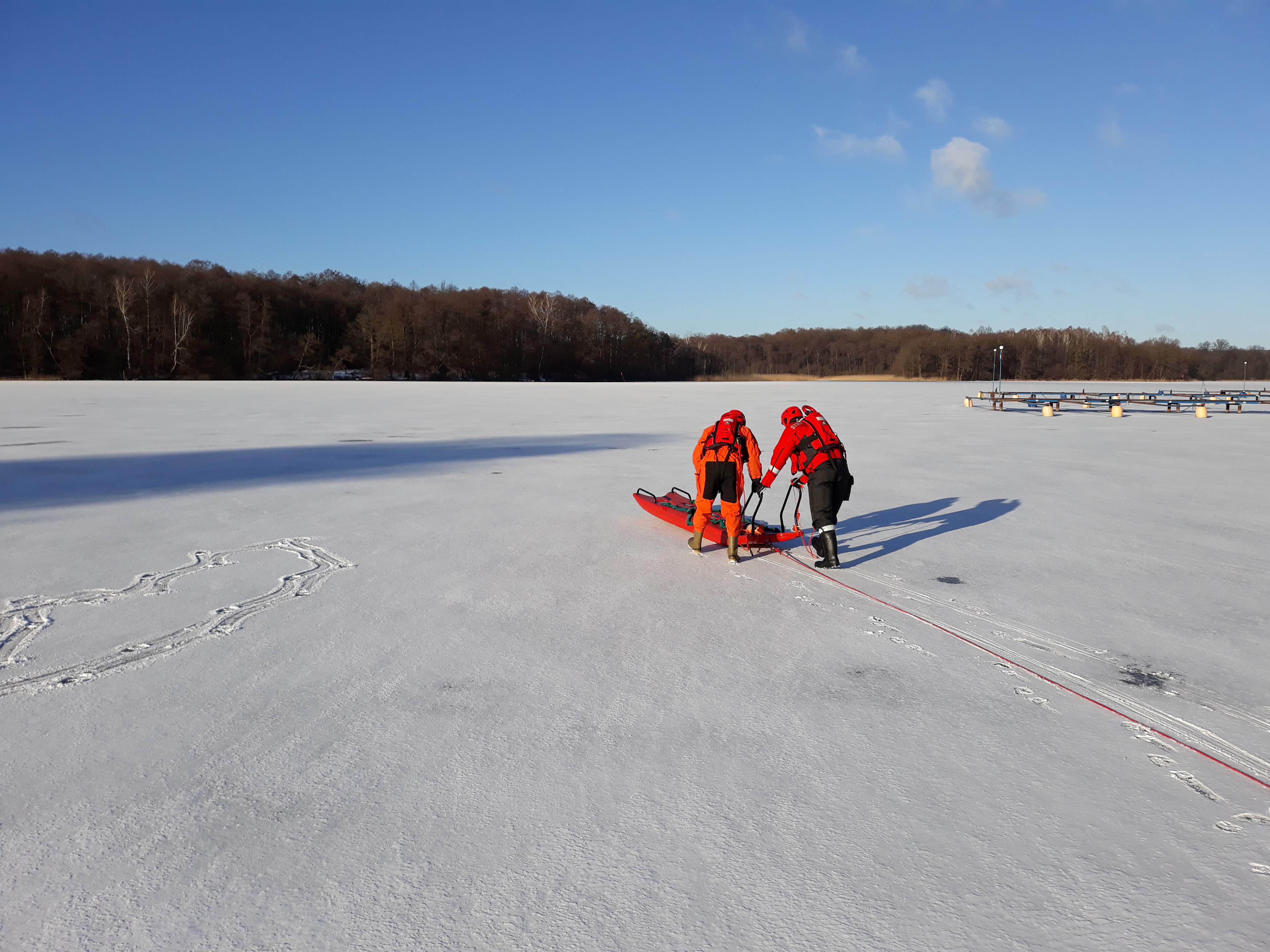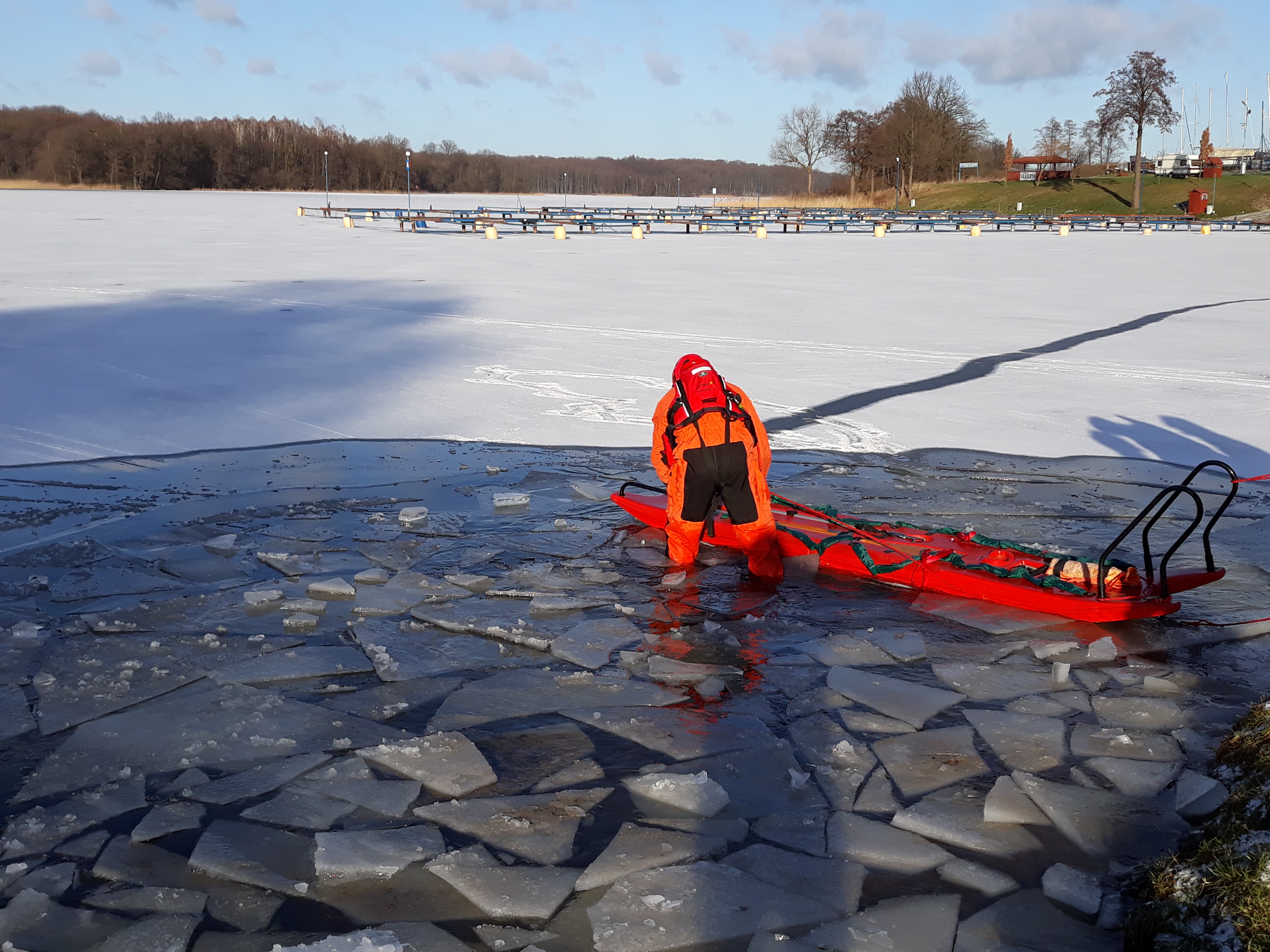- Jeśli podejmiemy próbę pomocy pamiętajmy, że należy wykorzystać np. gałęzie, szaliki czy nawet sanki, które będziemy starali się podać osobie, pod którą załamał się lód, żeby ograniczyć nasze podchodzenie do krawędzi przerębla.