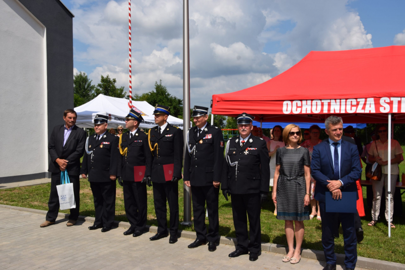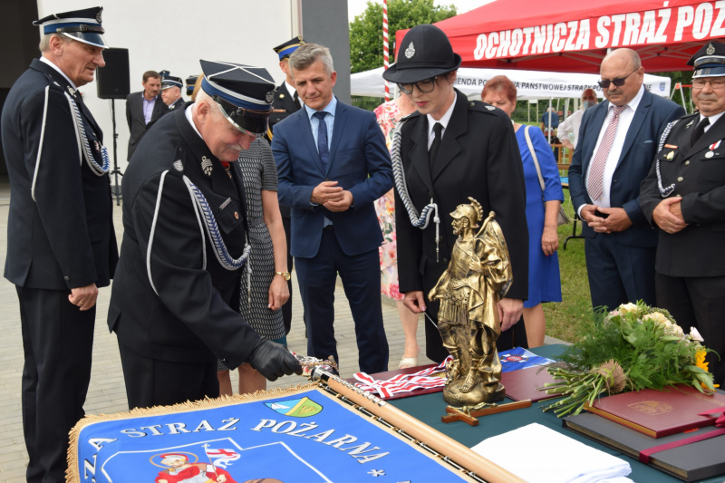W dalszej kolejności zaproszeni goście udali się na plac przed remizą. Przybyłych powitał wójt gminy Iława Krzysztof Harmaciński. Wójt podziękował wszystkim zaangażowanym w budowę remizy oraz inicjatorom nadania nowego sztandaru.