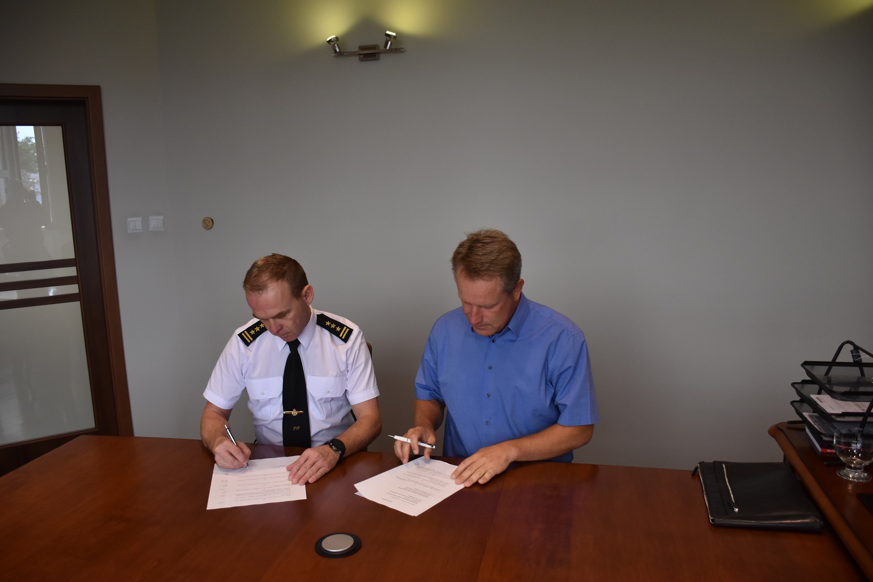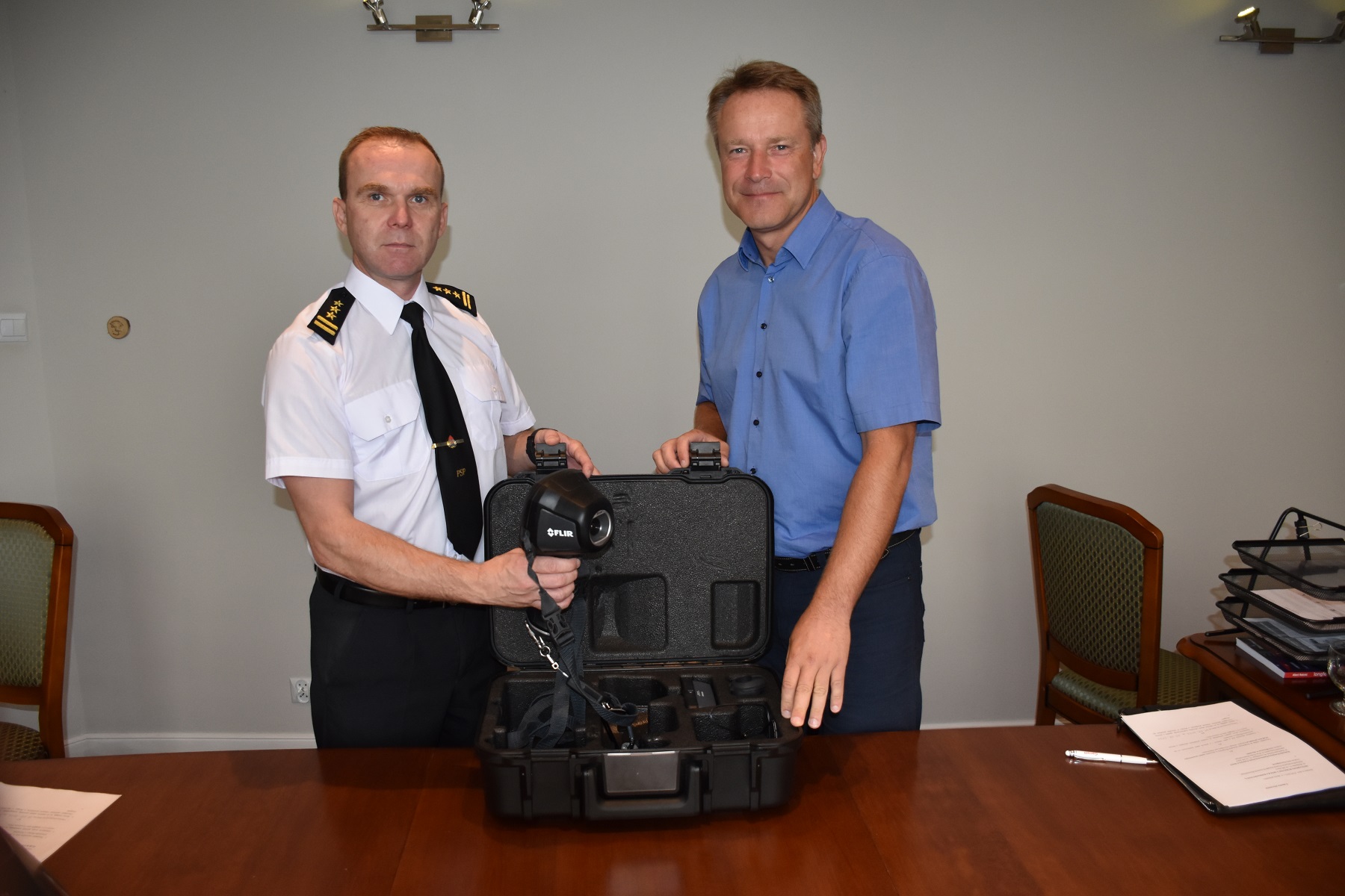 We wtorek 9 sierpnia w siedzibie firm MOTO REMO nastąpiło podpisanie umowy użyczenia kamery termowizyjnej pomiędzy Prezesem Zarządu Krzysztofem Burzyńskim, a st. bryg. Piotrem Wlazłowskim.