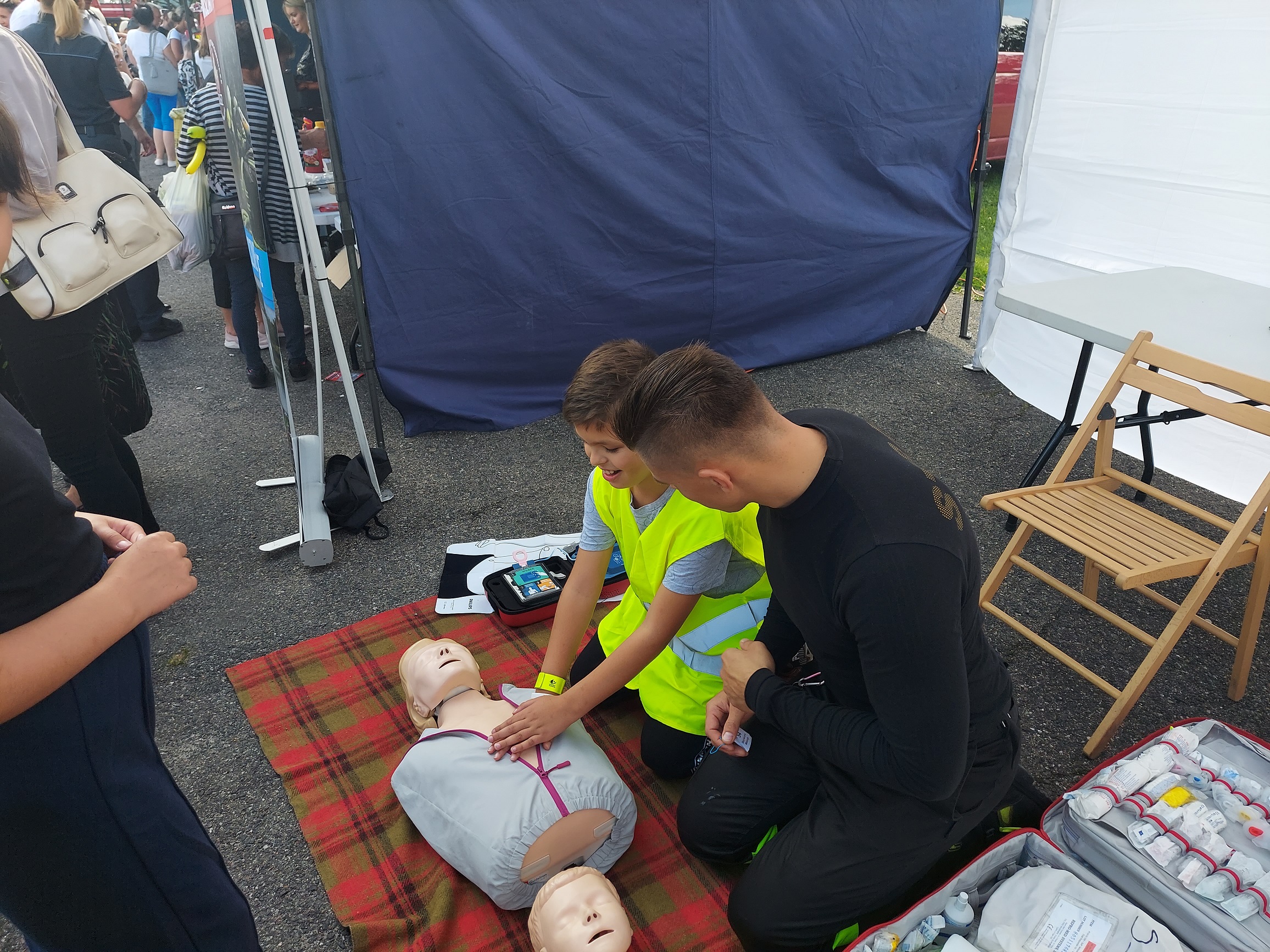 Kolejnym elementem, który cieszył się ogromnym zainteresowaniem był punkty, w którym na czterech fantomach szkoleniowych przekazywana była wiedza na temat prowadzenia resuscytacji krążeniowo oddechowej.