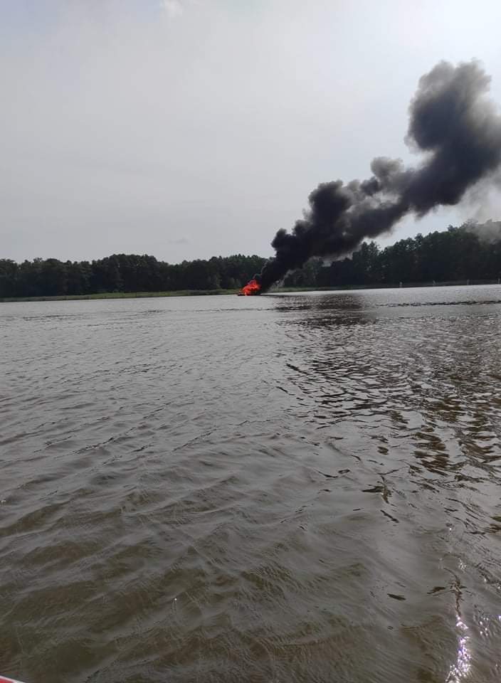 Pożar łodzi motorowej na wodach Jezioraka