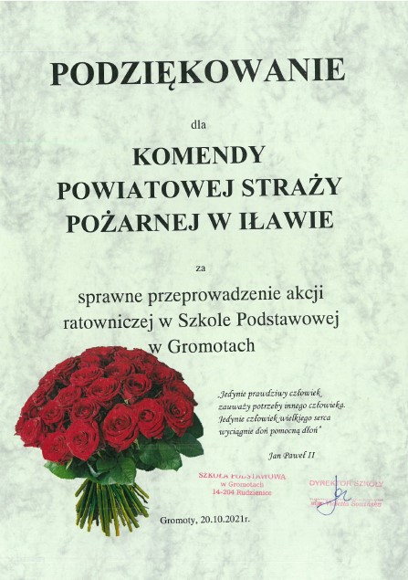 Dzięki uprzejmości dyrekcji szkoły podstawowej w Gromotach w dniu 21 października br. zostały przeprowadzone ćwiczenia praktyczne w zakresie sprawdzenia organizacji oraz warunków ewakuacji szkoły podstawowej. Jednocześnie w trakcie ewakuacji przeprowadzona została Koncentracja Gminna jednostek OSP Ławice, OSP Gromoty, OSP Rudzienice, OSP Mątyki,