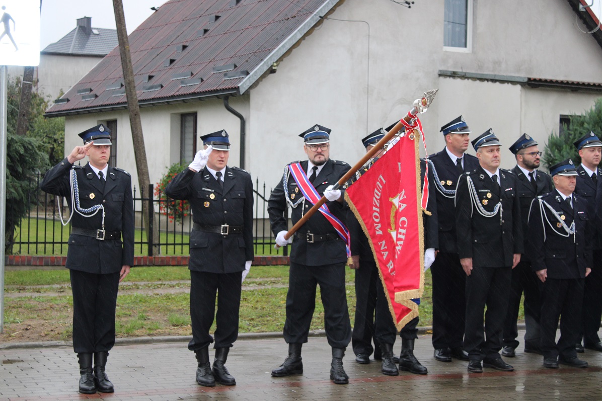 Mimo trudnych warunków atmosferycznych w ulewnym deszczu druhowie z jednostki OSP Omule dzielnie dopełnili ceremoniału strażackiego.