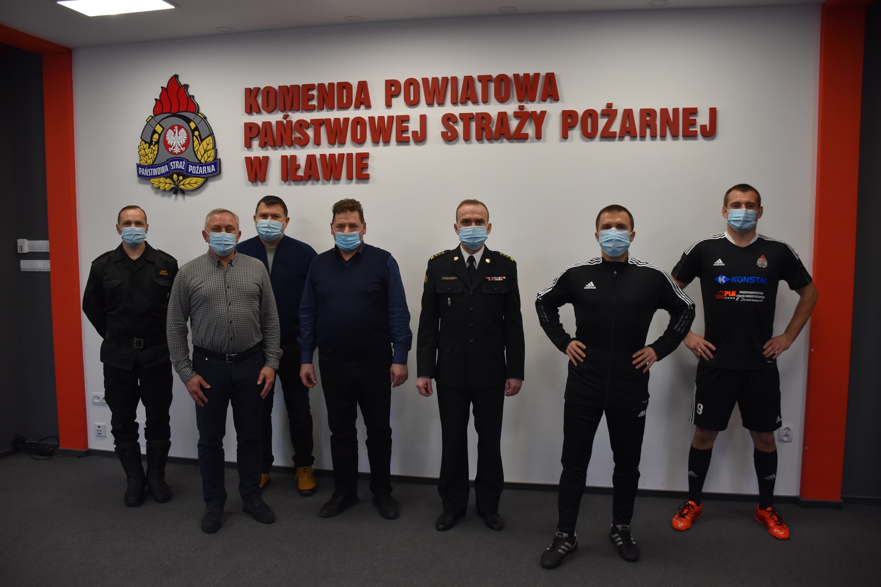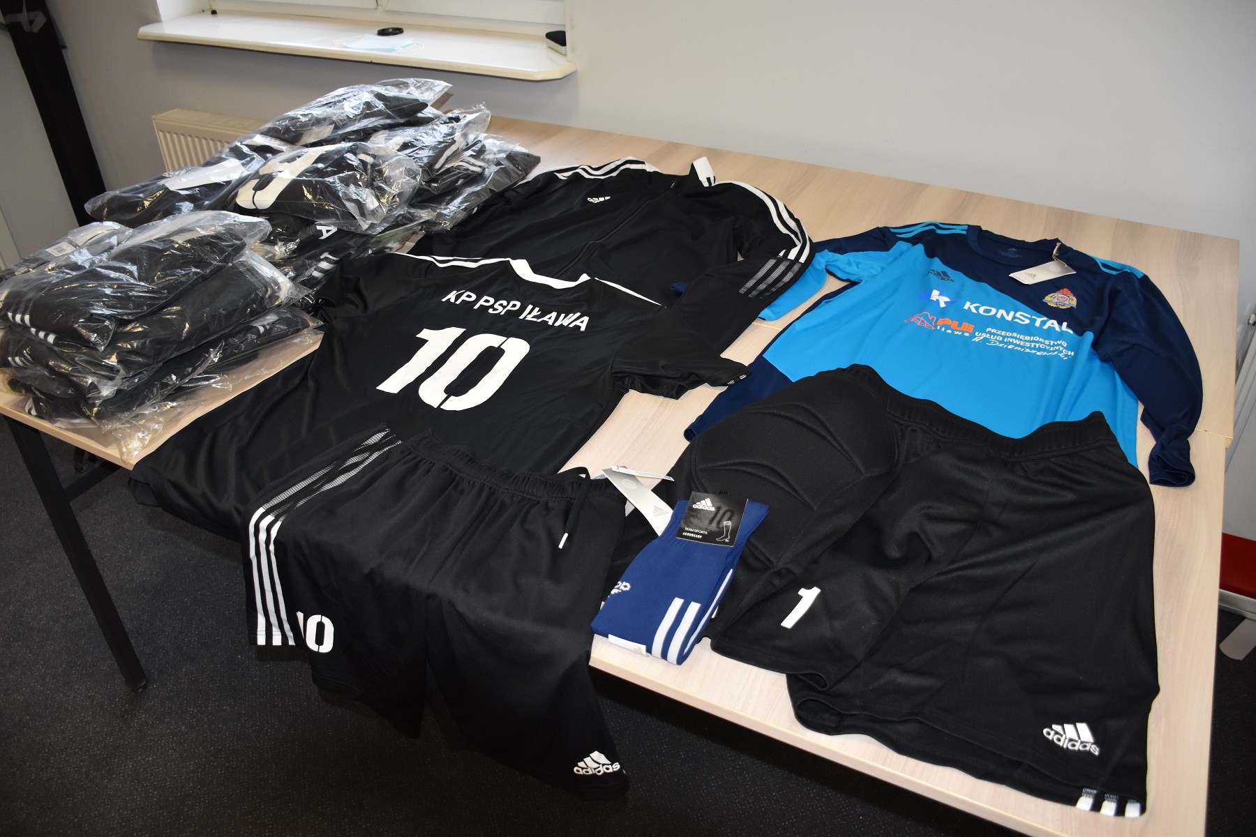 Darczyńcami nowych kompletów odzieży sportowej wraz z dresami były dwie lokalne firmy: KONSTAL MM KONECCY reprezentowana przez Pana Zdzisława Koneckiego oraz Przedsiębiorstwo Usług Inwestycyjnych Andrzej Dzieniszewski Usługi Geodezyjne i Kartograficzne reprezentowana przez Pana Andrzeja Dzieniszewskiego oraz Macieja Łabojko. Przedstawiciele wymienionych firm przekazali uroczyście na ręce Komendanta Powiatowego PSP w Iławie st. bryg. mgr inż. Piotra Wlazłowskiego nowe stroje sportowe i dresy.