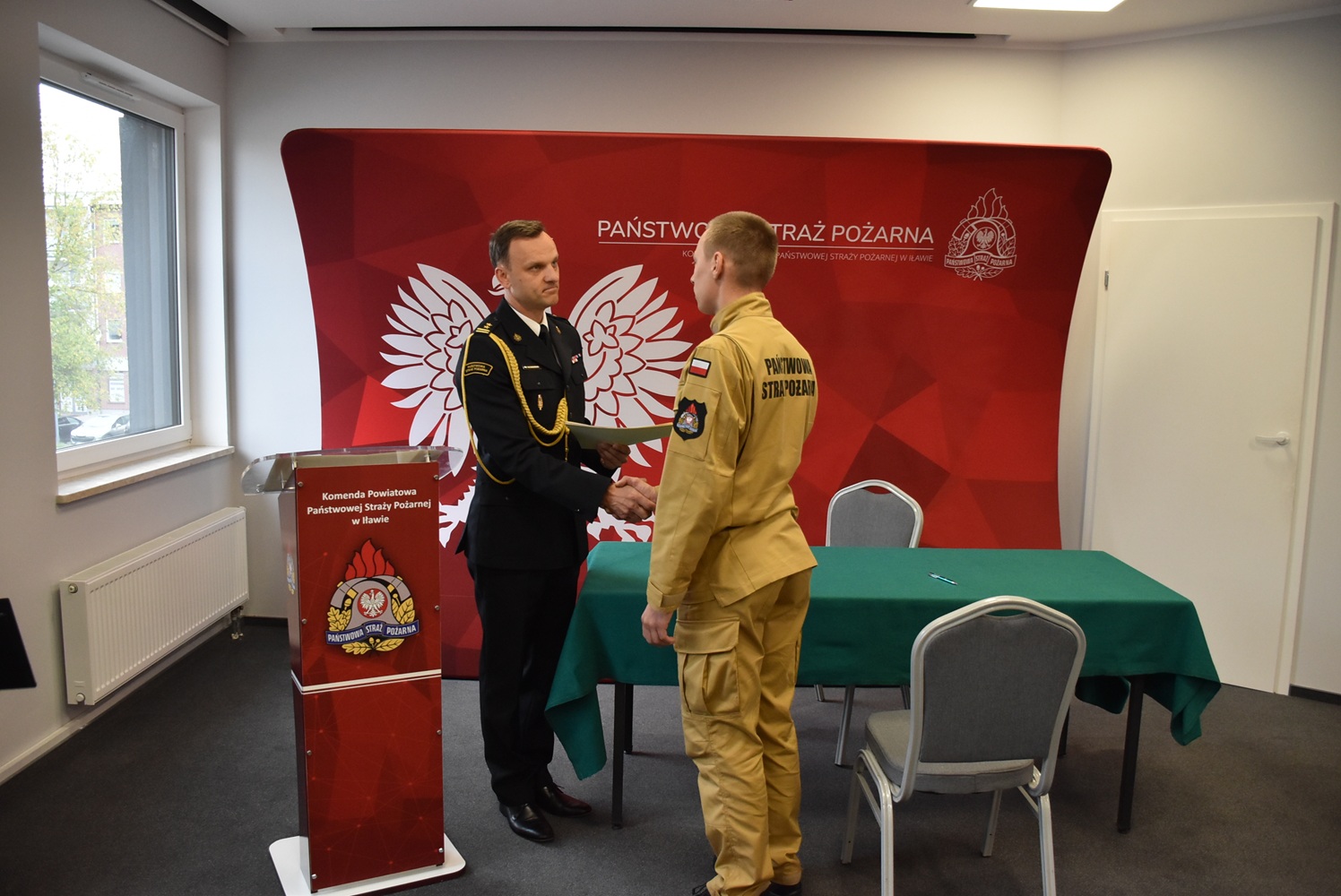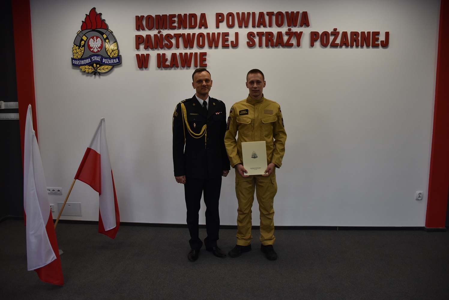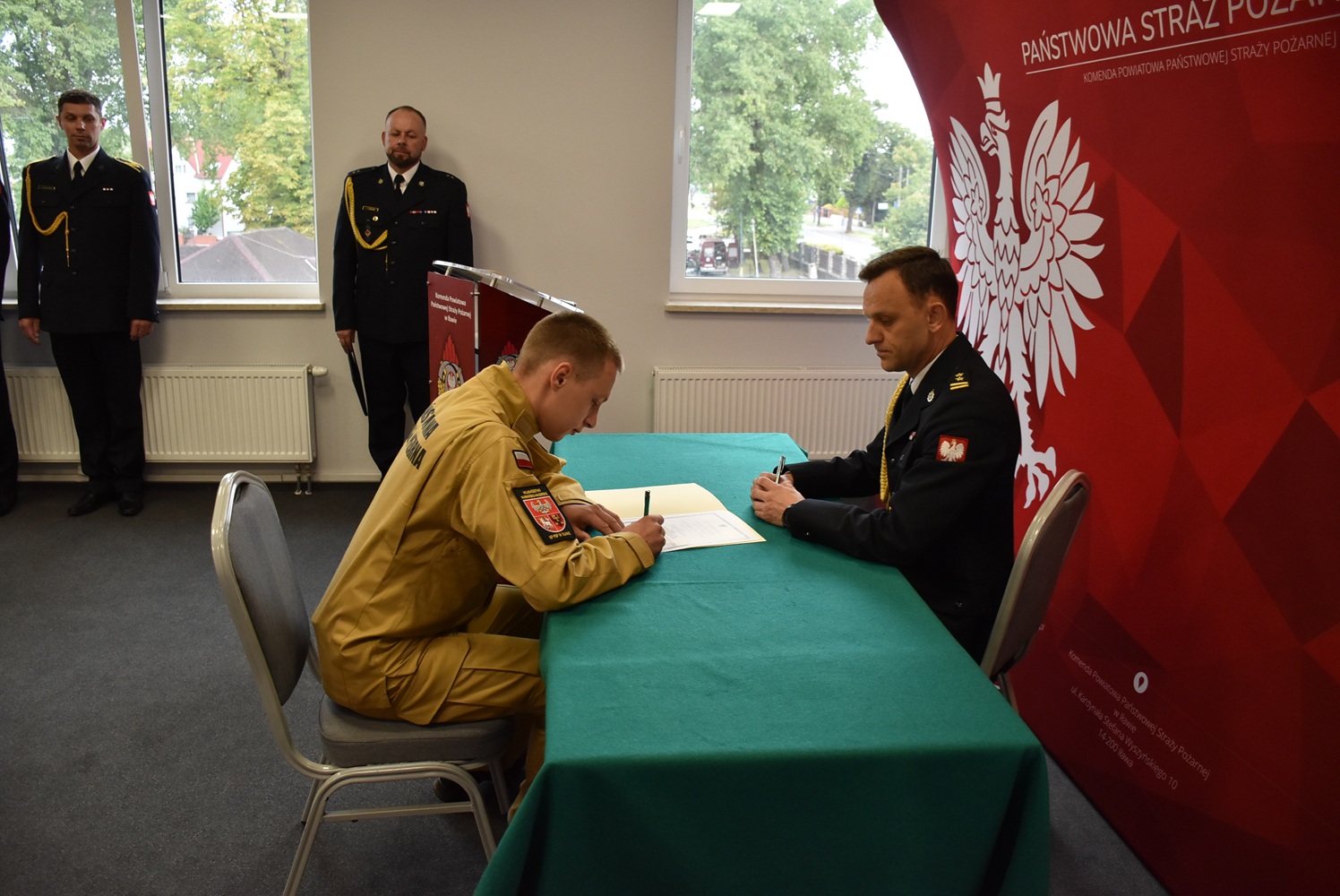 W obecności Komendanta Powiatowego PSP w Iławie bryg. Marcina Wiśniewskiego, pracowników i funkcjonariuszy komendy powiatowej PSP oraz rodziny i znajomych str. Damian Czarnecki, uroczyście złożył ślubowanie na sztandar: