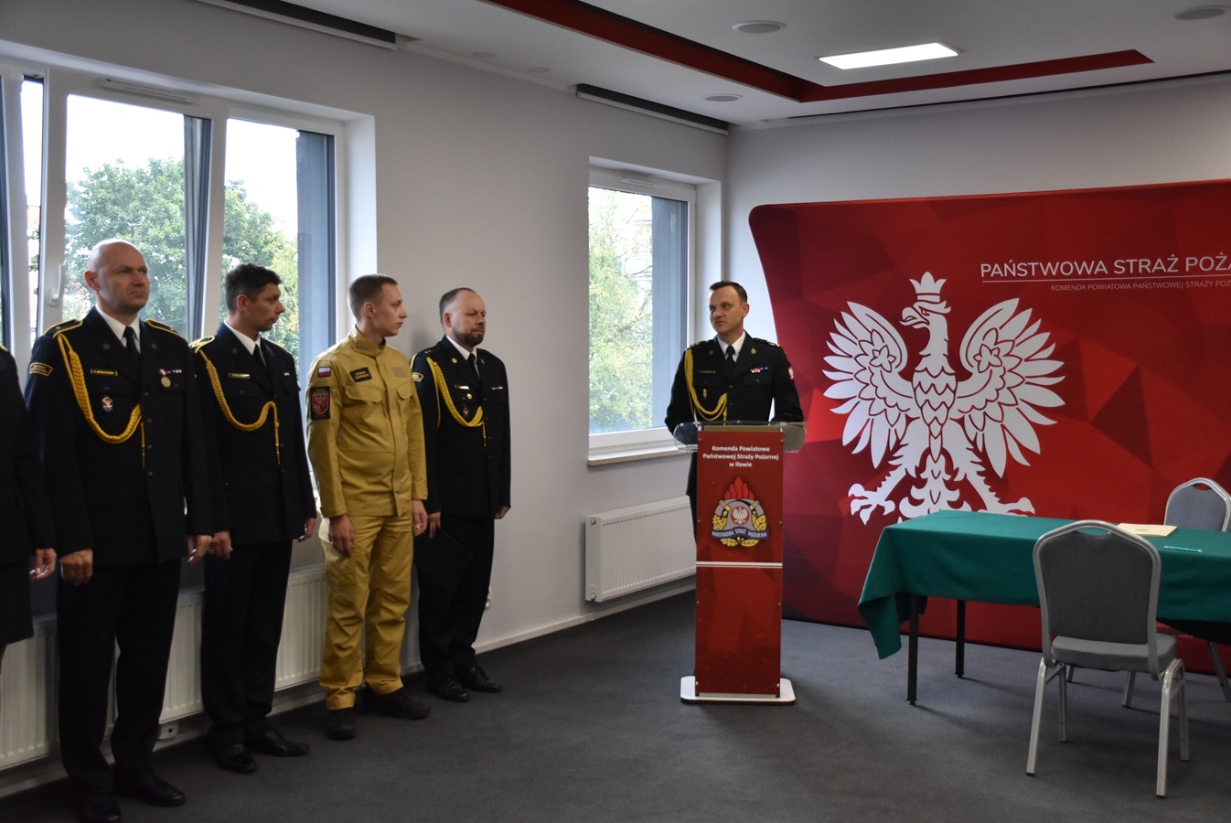 Podczas swojego przemówienia, komendant podkreślił wagę i odpowiedzialność jakie niesie ze sobą służba w Państwowej Straży Pożarnej. Każdego dnia strażacy stają w obliczu zagrożeń, ryzykując własne życie, by ratować innych.