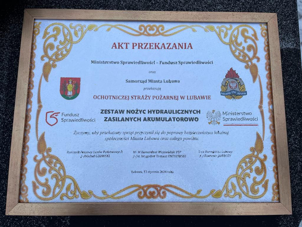 Średni samochód ratowniczo-gaśniczy marki Renault kosztował ponad 1 mln złotych. Pieniądze pochodziły z Narodowego Funduszu Ochrony Środowiska i Gospodarki Wodnej, Krajowego Systemu Ratowniczo-Gaśniczego oraz budżetu Miasta Lubawy.