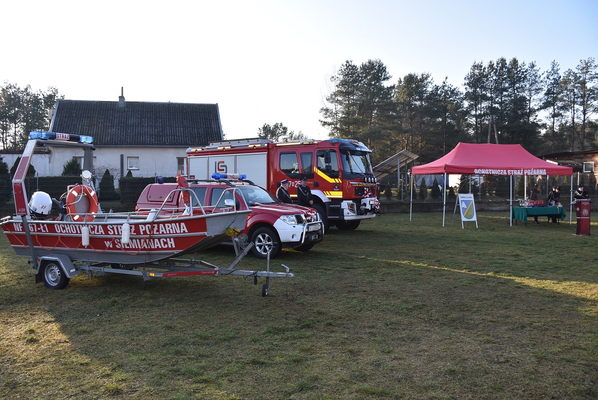 W piątkowe popołudnie 24 stycznia przed remizą Ochotniczej Straży Pożarnej w Siemianach odbyła się uroczystość z okazji oficjalnego przekazania średniego samochodu ratowniczo- gaśniczego oraz lekkiego samochodu ratownictwa wodnego dla jednostki Ochotniczej Straży Pożarnej w Siemianach
