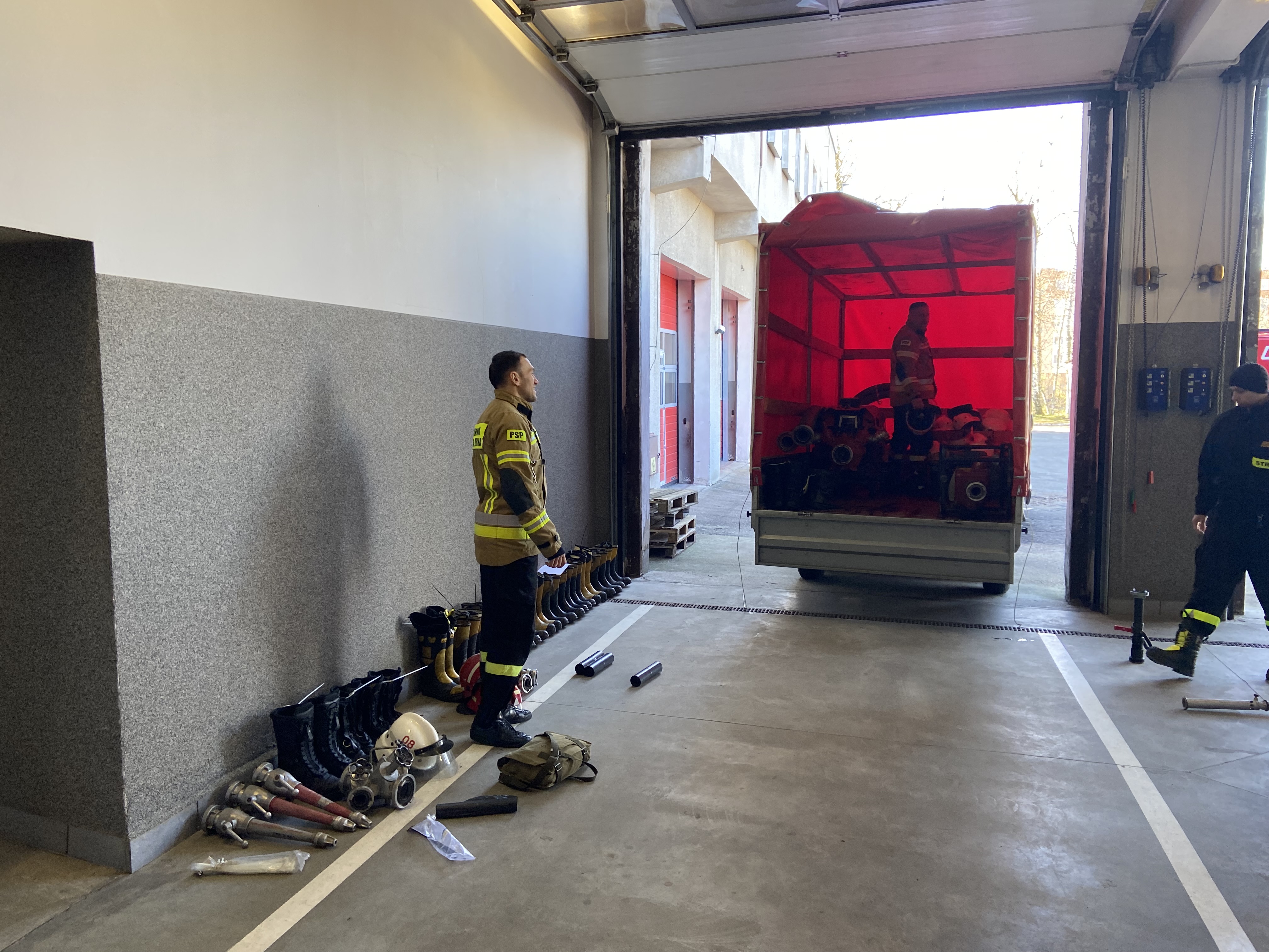 Spakowany i posegregowany sprzęt dostarczony został do Jednostki Ratowniczo – Gaśniczej