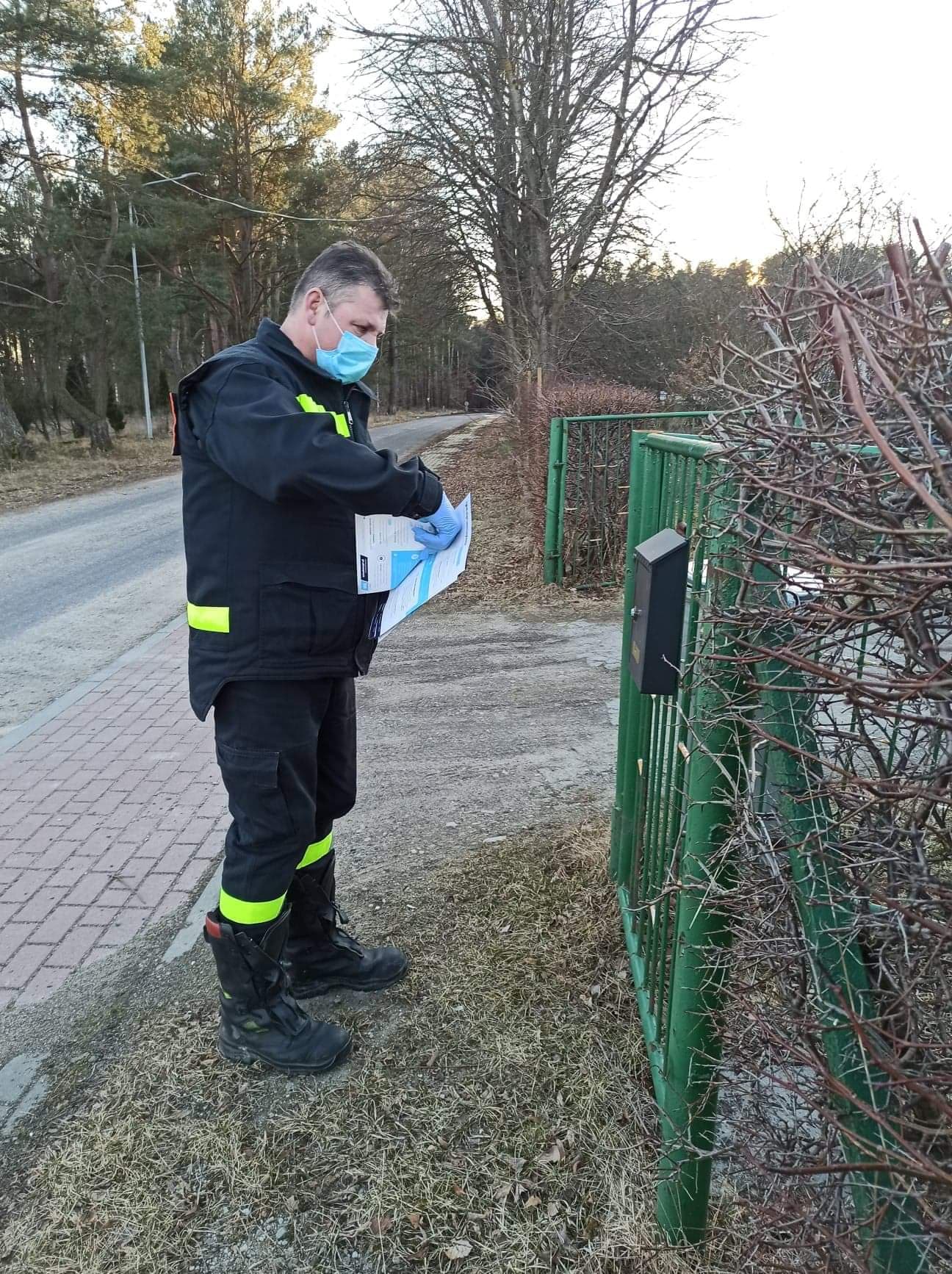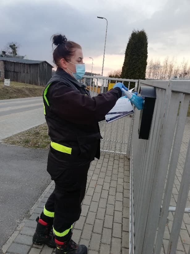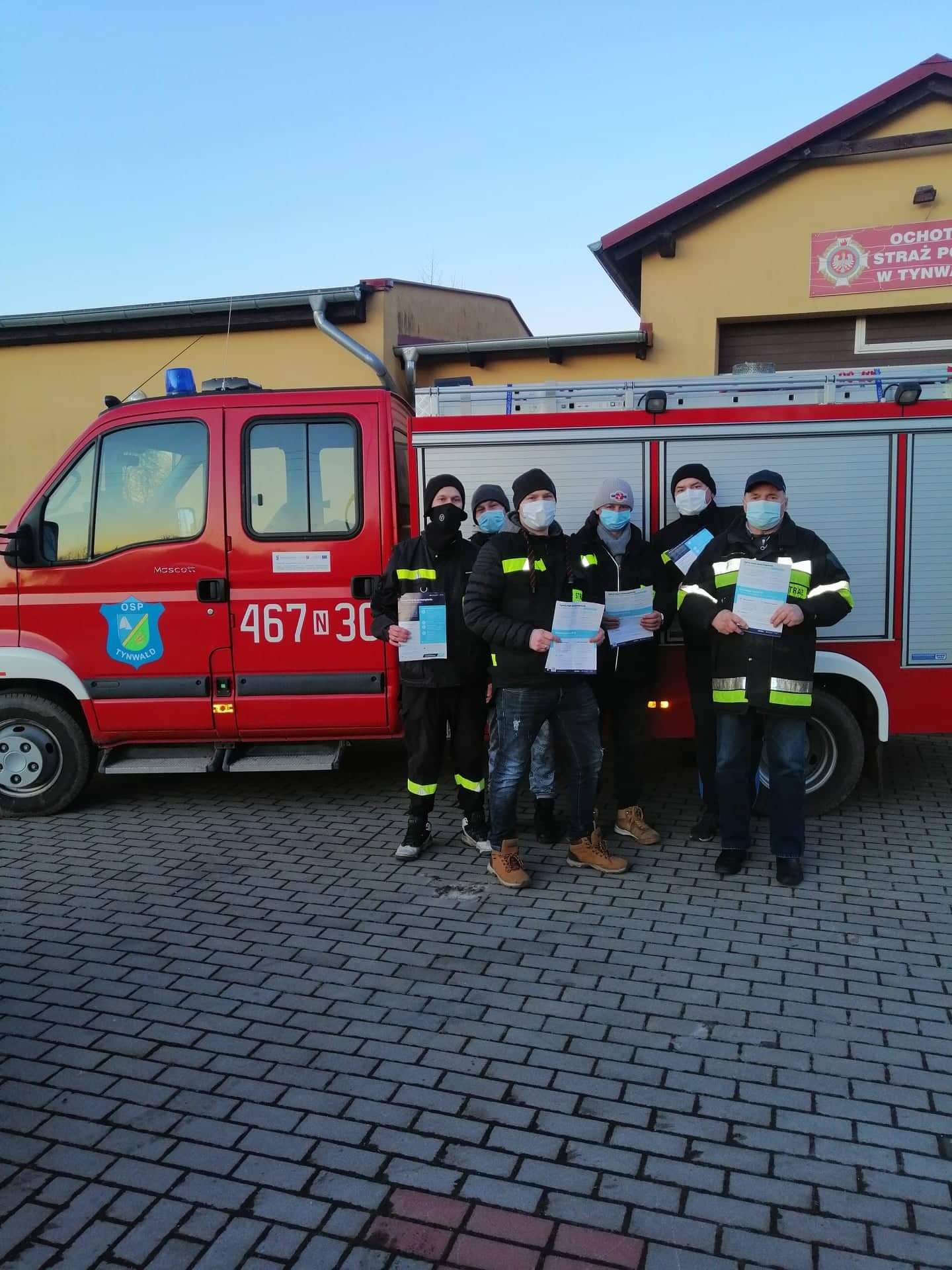 Strażacy z jednostek OSP dostarczają ulotki na temat szczepień do mieszkańców powiatu iławskiego